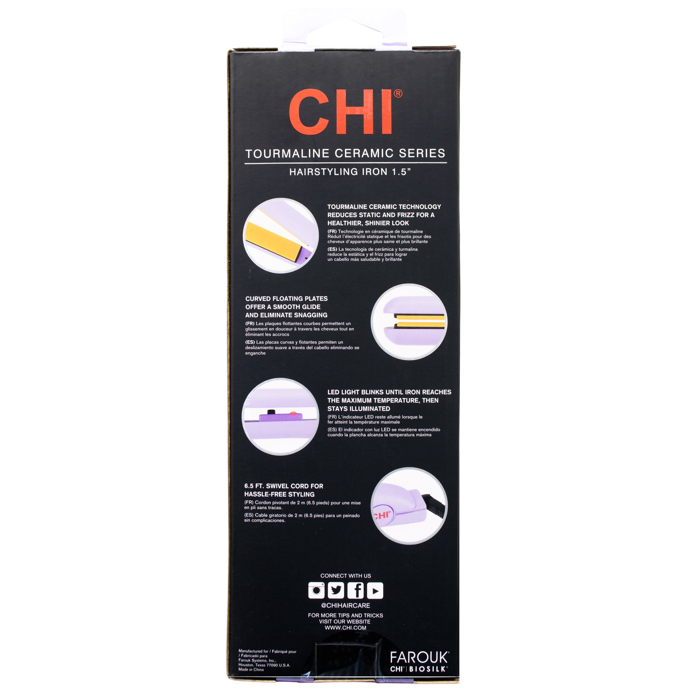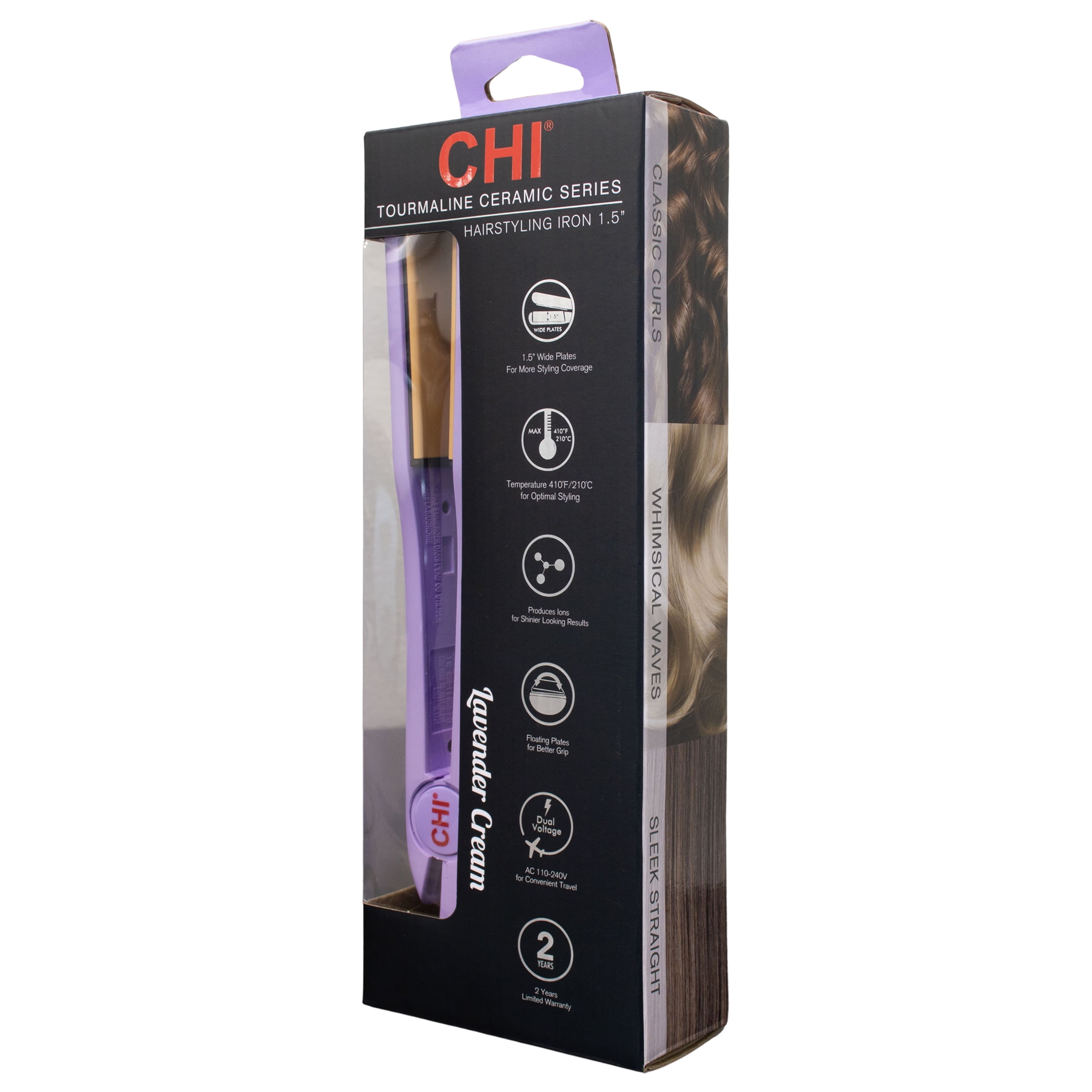 CHI 1½” Tourmaline Ceramic Hairstyling Iron Wide Plate utilizes the latest innovative technology combining Tourmaline Ceramic with even heat distribution, producing an exceptionally high amount of negative ions and Far Infrared which reduce static electricity for that perfect style. Hair is left smooth and silky with an exceptional shine. This Hairstyling Iron is ideal for all your hairstyle needs. Now, you can straighten, smooth, curl, wave, and flip. Just use your imagination and create your own personal flare.