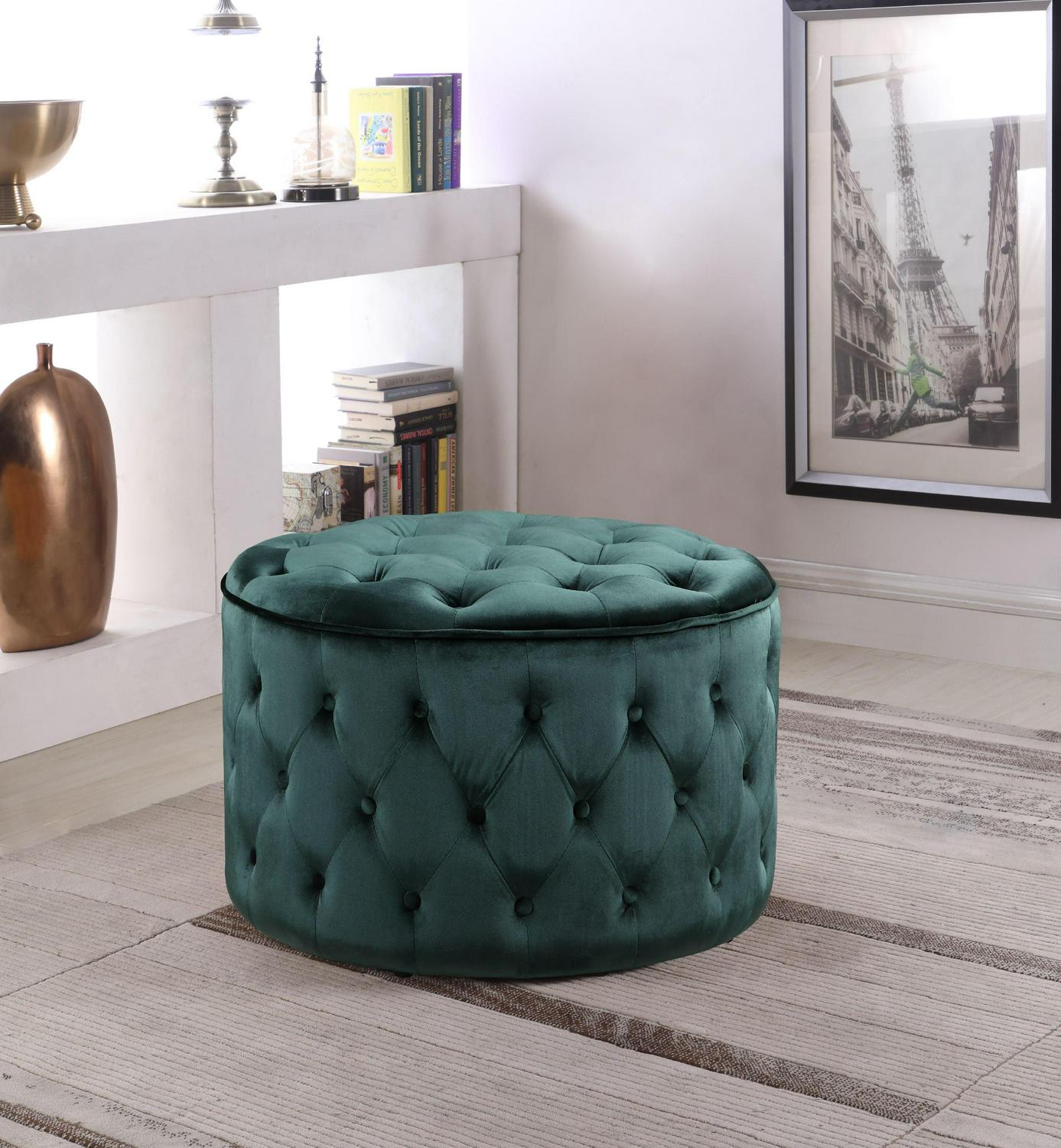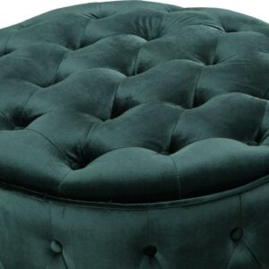 This round pouf Ottoman doubles as extra seating and functional décor for virtually any environment. Softened contemporary design features luxe velvet upholstery and chic, all around button tufting. In an instant, adds a touch of timeless elegance to your room.