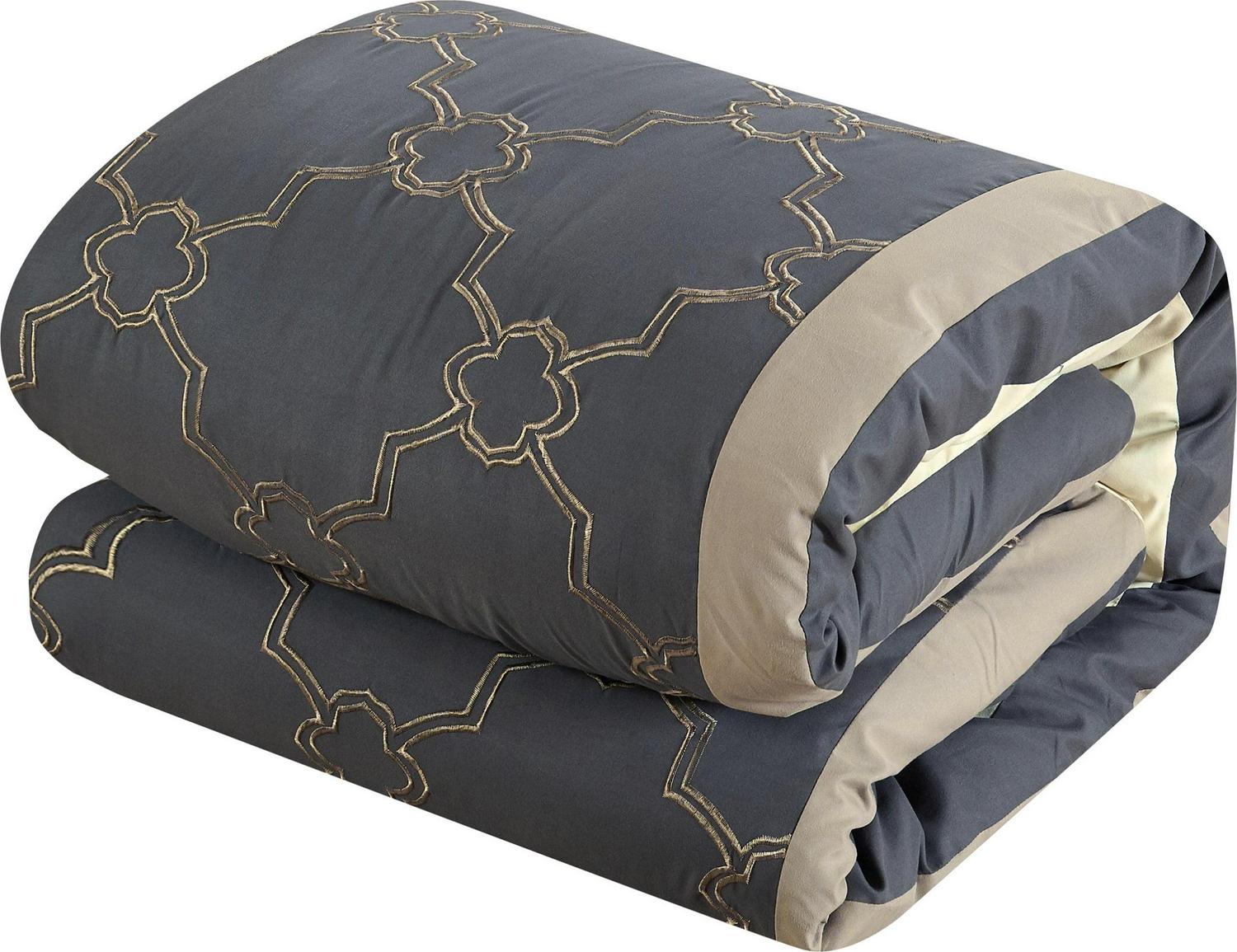 Chic Home Casper 16-Piece Embroidered Comforter Set, Queen, Beige