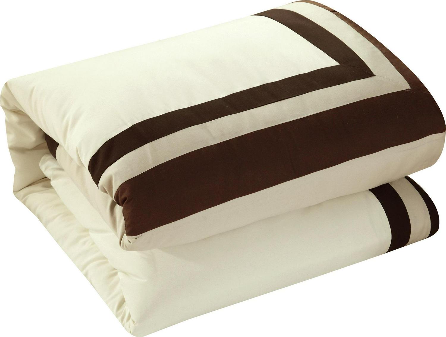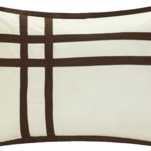 Decorate your entire bedroom with this masterful complete master bedroom ensemble. Color block piecing design appeals to a contemporary yet elegant sense of style. Super soft microfiber fabric is very soft and luxurious. This is a perfect set, in beige, it includes all the tools needed to design and decorate a master suite. Decor pillows, a complete sheet set and 2 sets of window treatments allow you to add all the touches needed to enhance your bedroom decor.