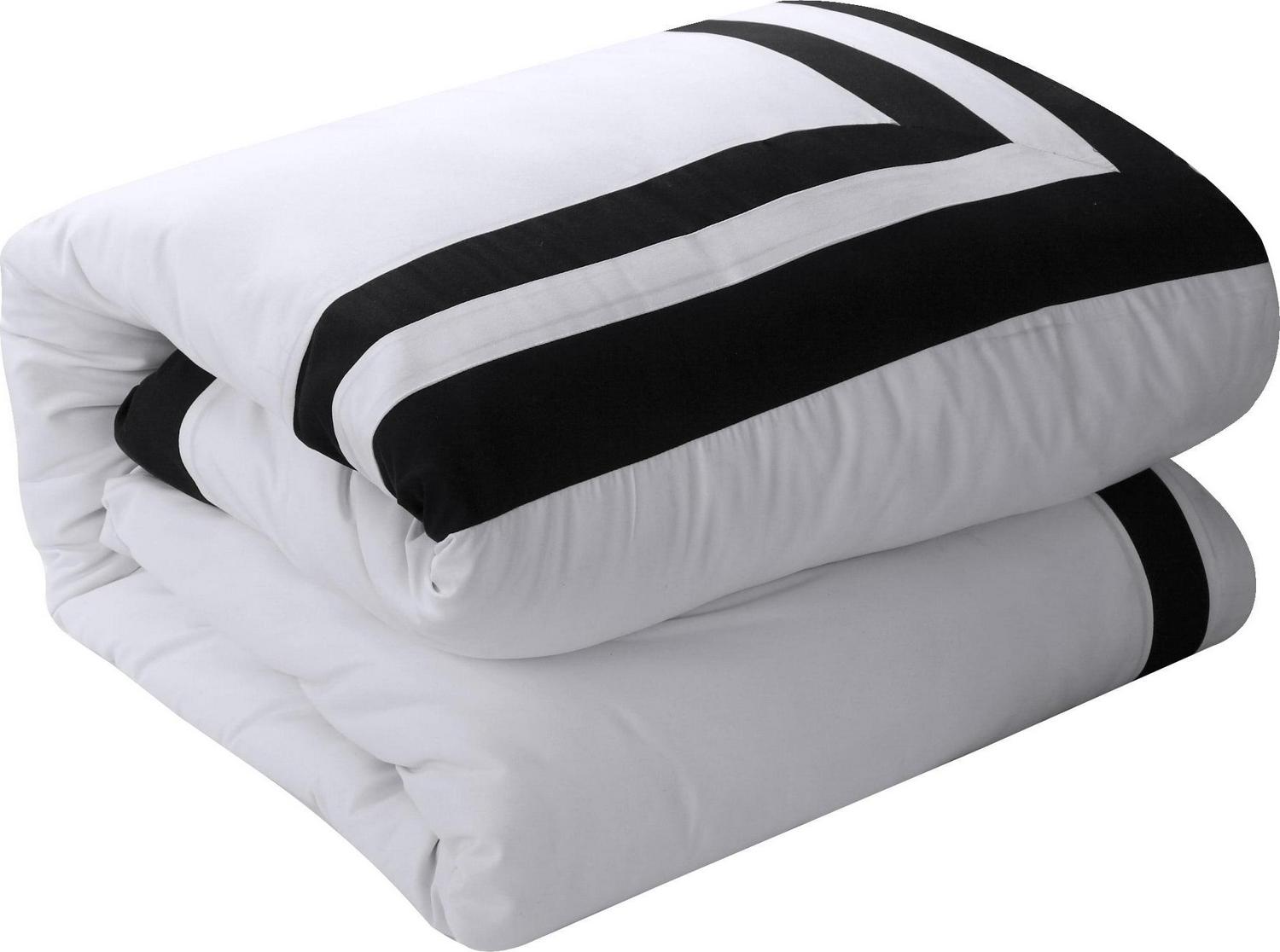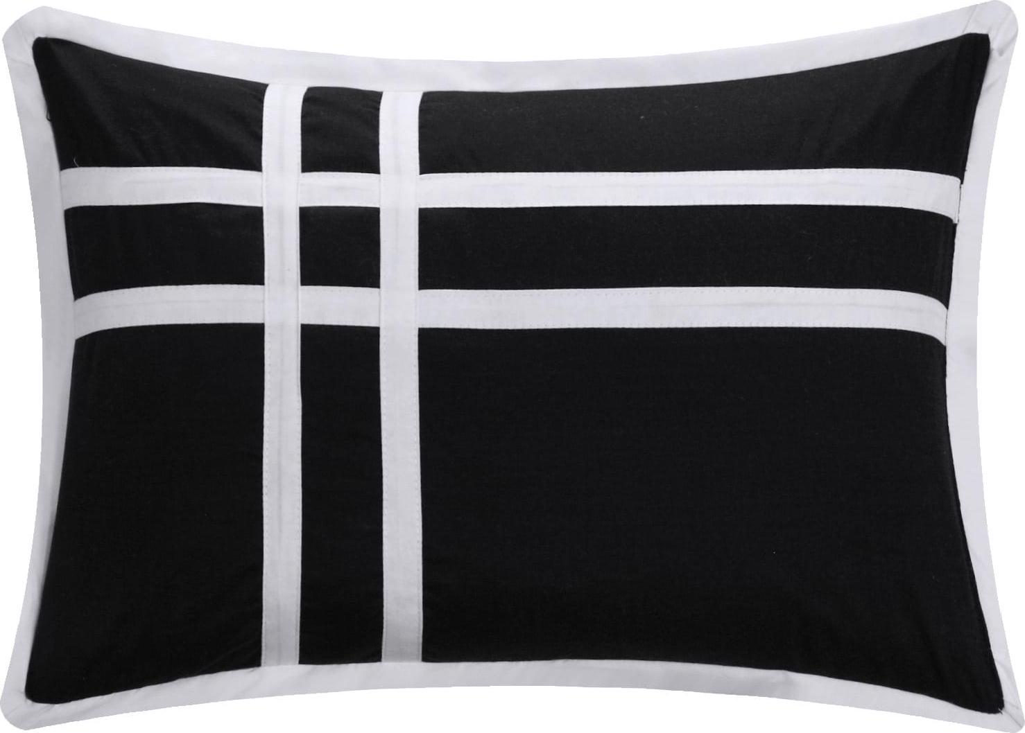 Decorate your entire bedroom with this masterful complete master bedroom ensemble. Color block piecing design appeals to a contemporary yet elegant sense of style. Super soft microfiber fabric is very soft and luxurious. This is a perfect set, in white, it includes all the tools needed to design and decorate a master suite. Decor pillows, a complete sheet set and 2 sets of window treatments allow you to add all the touches needed to enhance your bedroom decor.