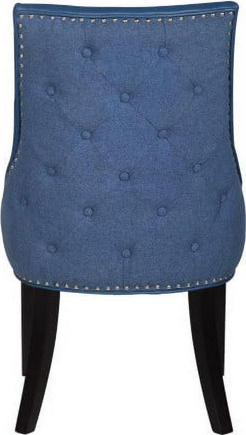 An updated interpretation of a classic dining chair. Design details abound from gentle swoop arms to the beautiful PU leather upholstery inside and button tufted linen upholstery on the outside. Tapered solid birch legs and silver nailhead trim complete the refined look that will complement a dining table or living area.
