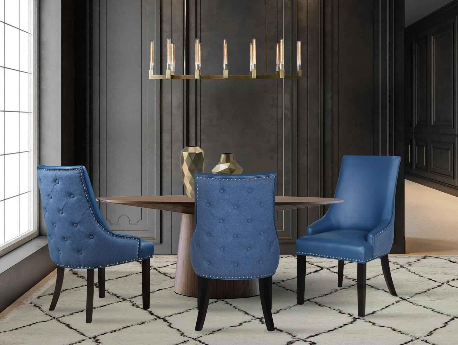 – SITTING PRETTY – Elegant and timeless design abounds on the Brando Dining Side Chair – From its luxurious PU leather and linen upholstery and swoop arm to its silver nailhead trim and tapered, birch legs, every detail makes this a timeless piece perfect most décor – This pair sits beautifully around a dining table or can be used in any conversation area – Perfect in multiples for your dining room, living room, den, lounge, or office