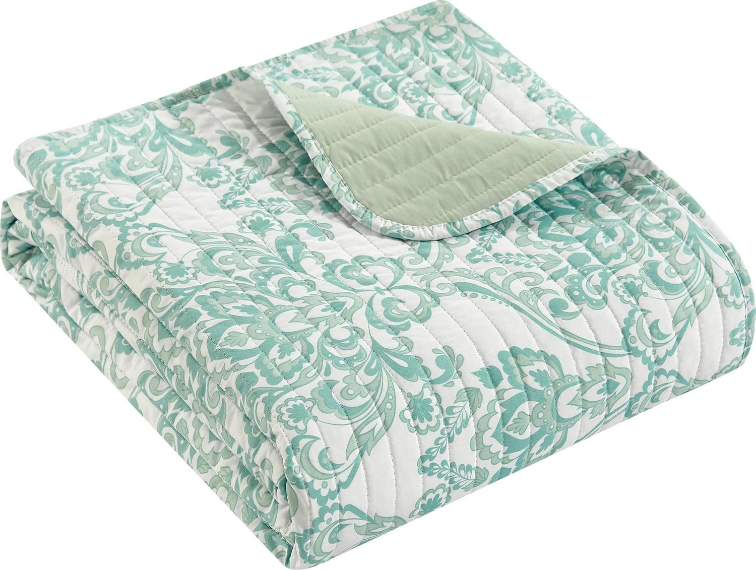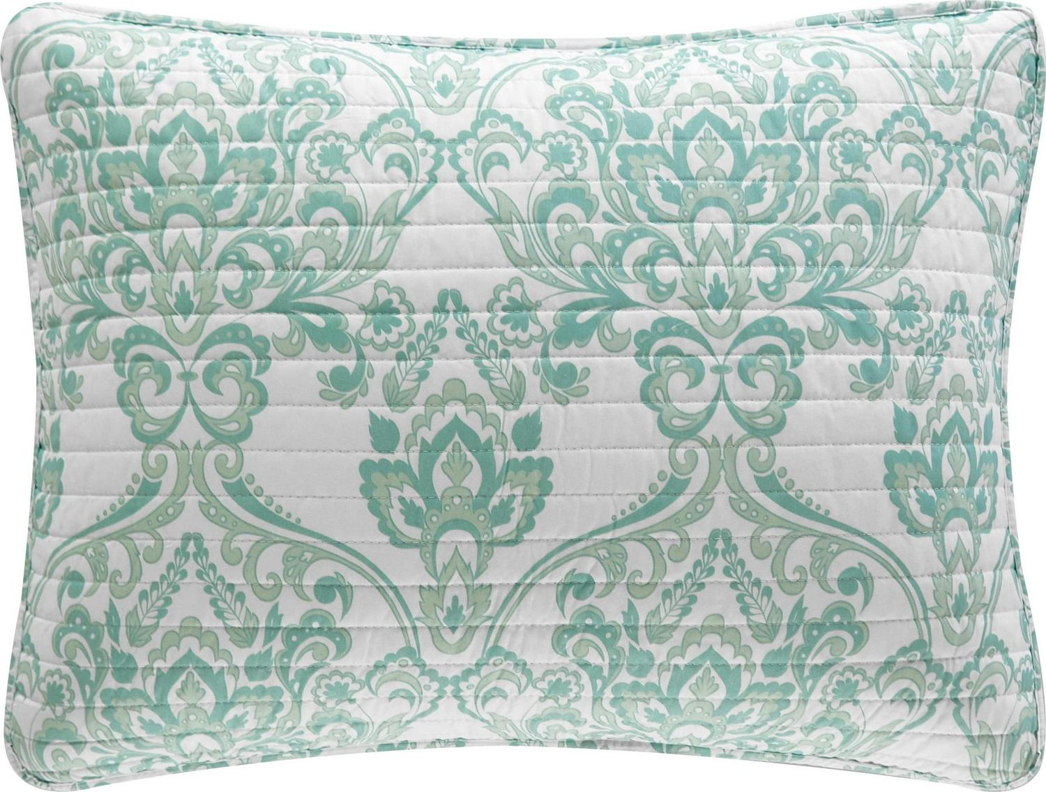 Give your bedroom a fun, refreshing look with the unique style of the Bassi quilt set from Chic Home. This earth tone quilt features a sage green medallion pattern print on the face and a solid color backing on the reverse. Two design coordinated pillow shams, four embroidered pillowcases, an embroidered flat sheet and a solid white fitted sheet are included to complete the set.
