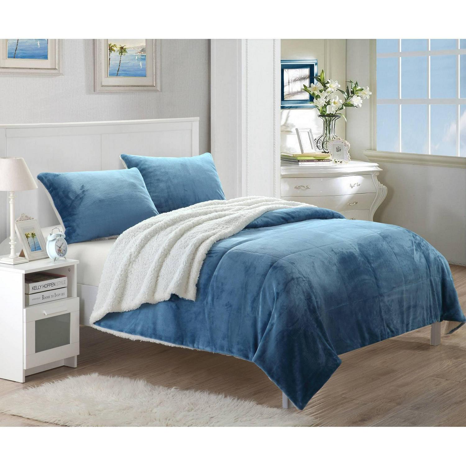 Includes:1 Sherpa Blanket, 2 Pillow Shams, 1 Flat Sheet, 1 Fitted Sheet, 2 Pillow Cases