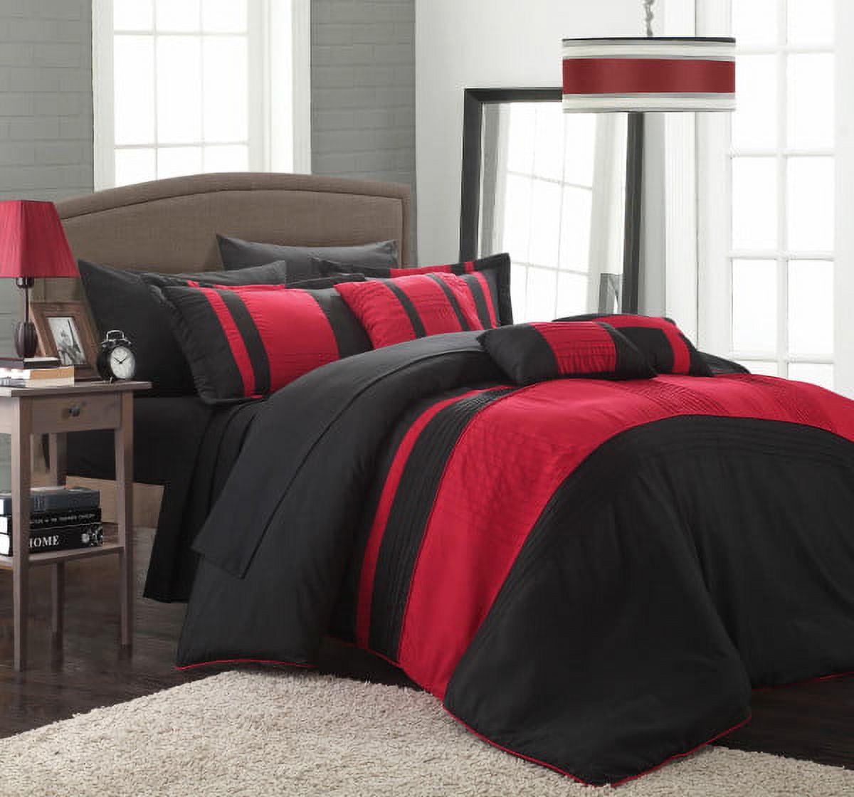 Chic Home Figaro 10-Piece Color Block Comforter Set, King, Red
