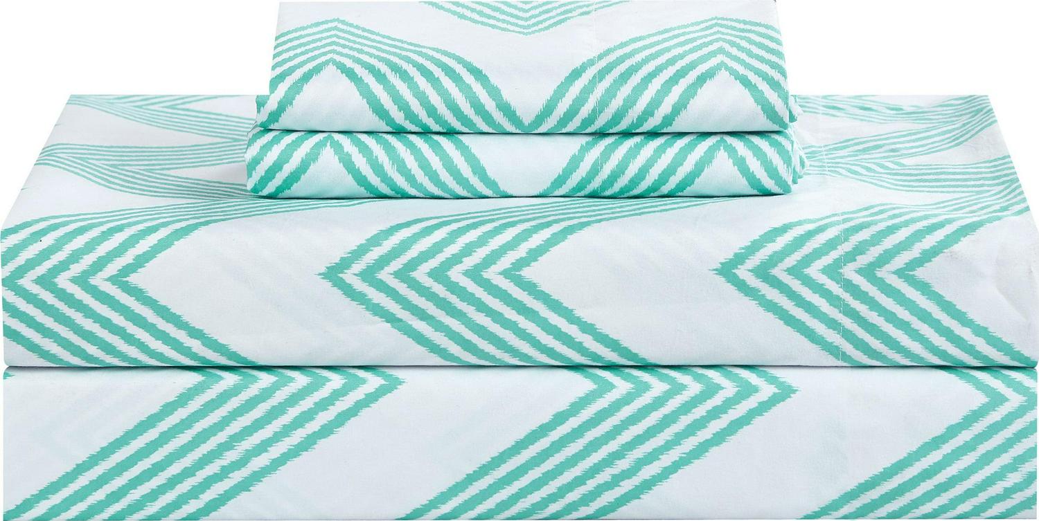 Inspired and meant to decorate your space with youthfulness, color and a lot of fun. Detailed pinch pleated super soft fabric which reverses to fun zig zag Chevron pattern. This Set included a coordinating printed sheet set, a velour pom pom trim pillow and of course a HASHTAG of #BE Happy pillow. This set has everything you need to make your space fun and inviting.