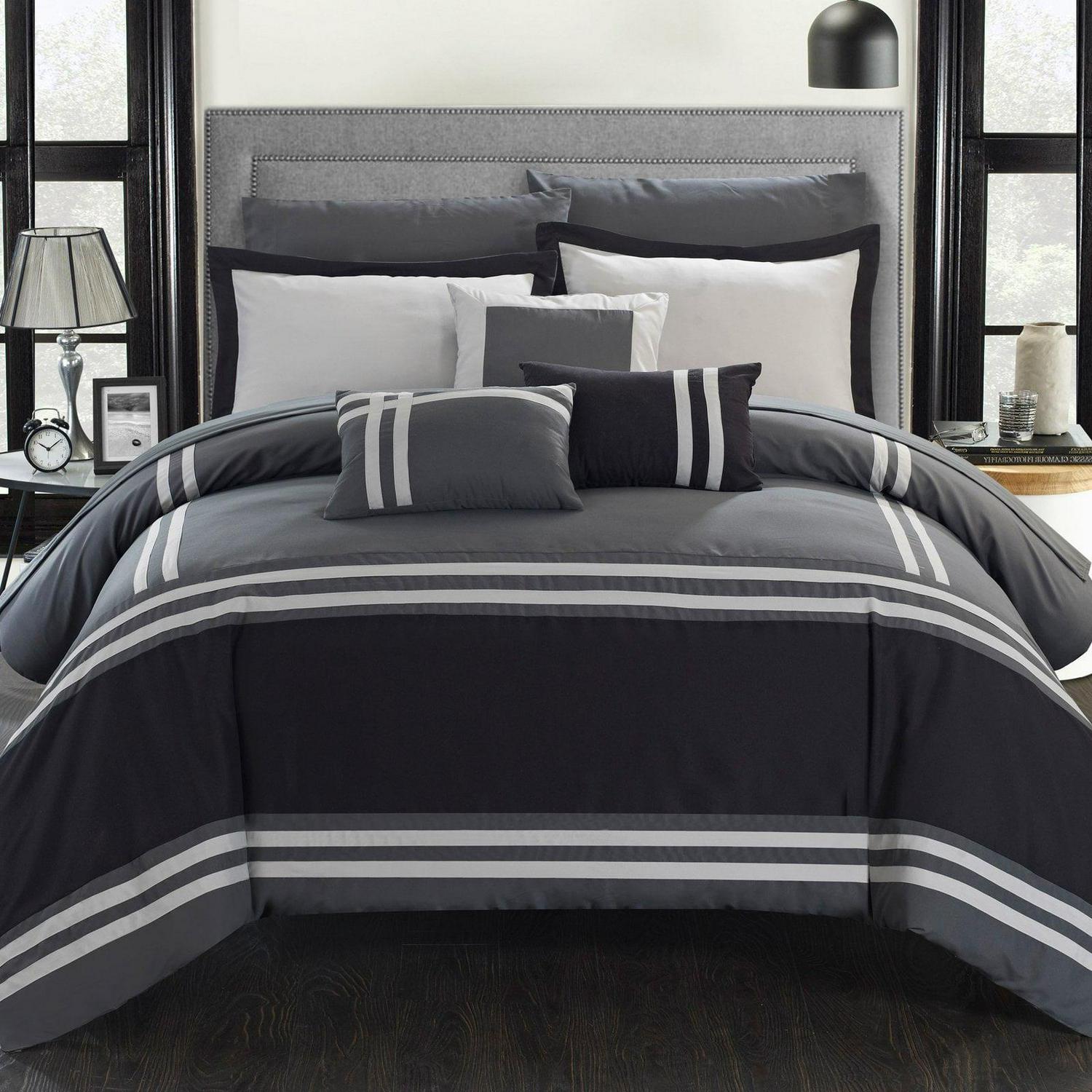 – CONTEMPORARY PIECED PATTERNED DESIGN Achieve the elegant sophisticated style you are looking for with the Chic Home Georgette minimalist comforter set The simple yet elegant piecing and banding color blocking technique adds a 3D effect that is guaranteed to elevate your master suite or guest room