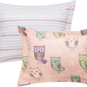 A fun and colorful comforter set perfect for back to school (or college) with everything you need to a transform a child’s bedroom or a dorm. The comforter features a cute “It’s a Hoot” theme complete with hooting owls and floral details on a pink field with a soft pastel colored striped design on the reverse. Design coordinated super-soft microfiber sheets, a reversible pillow sham and a ruched decorative throw pillow are included to complete the look.