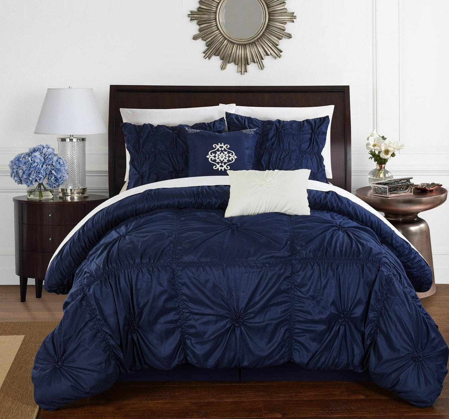 Chic Home Hyatt 10-Piece Ruffled Comforter Set, King, Navy