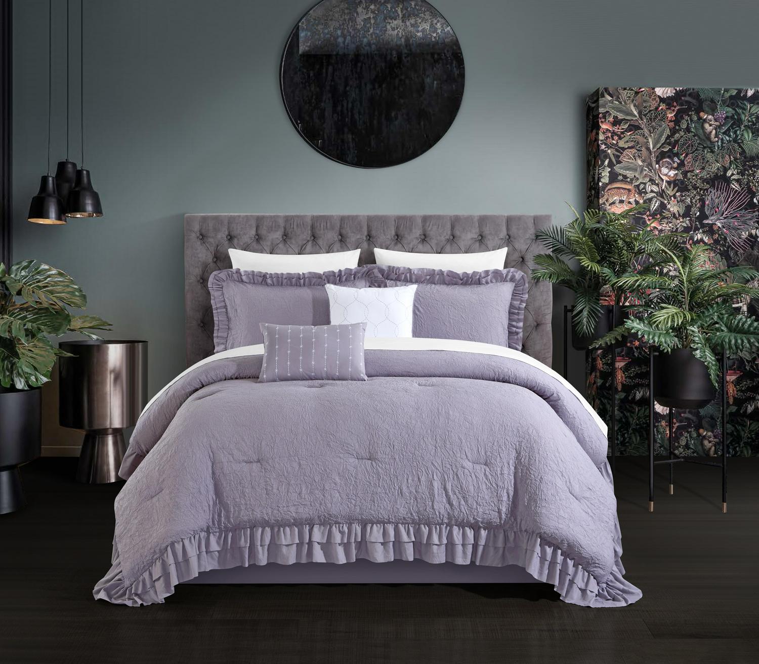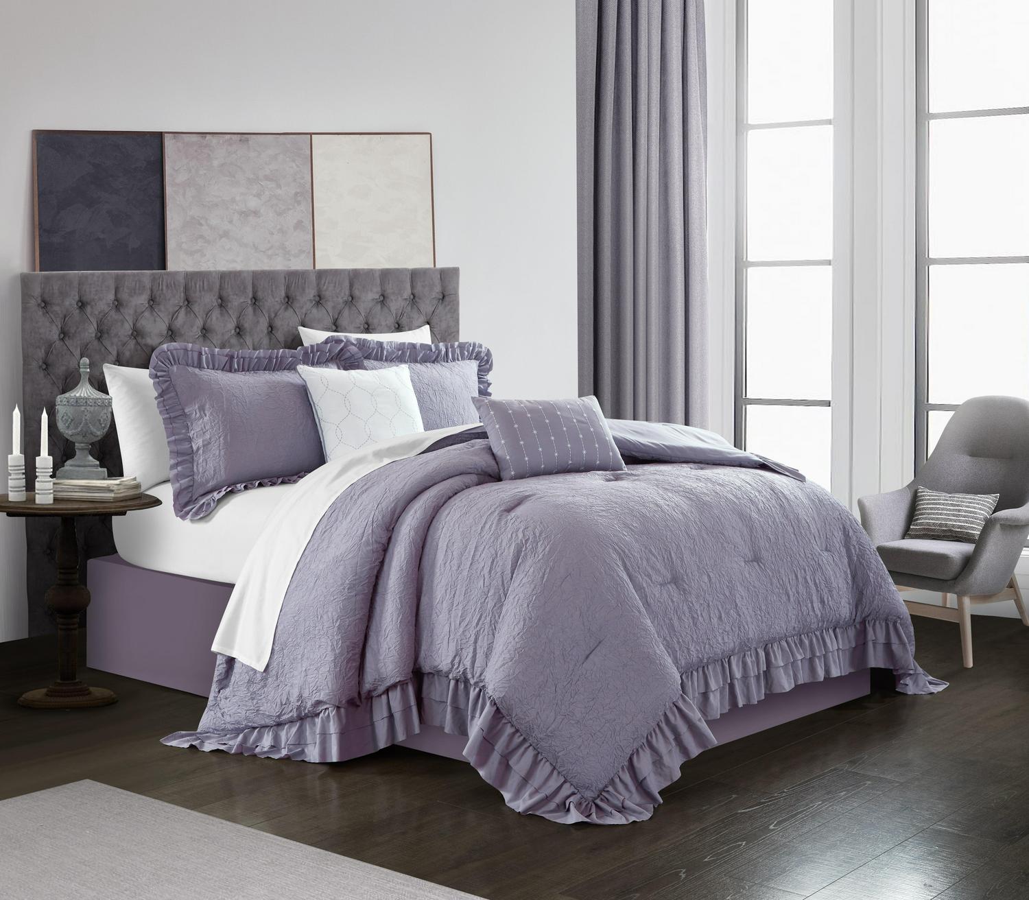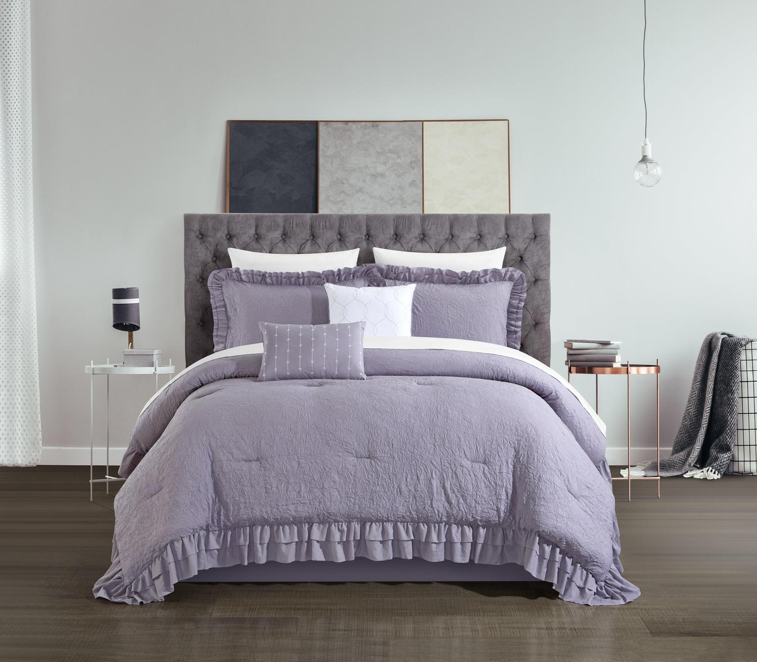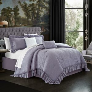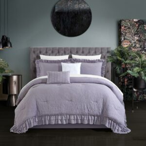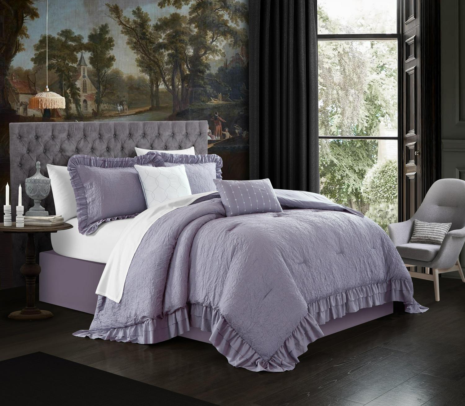 Chic Home Kaci 7-Piece Solid Color Ruffled Comforter Set, Twin X-Long, Lavender