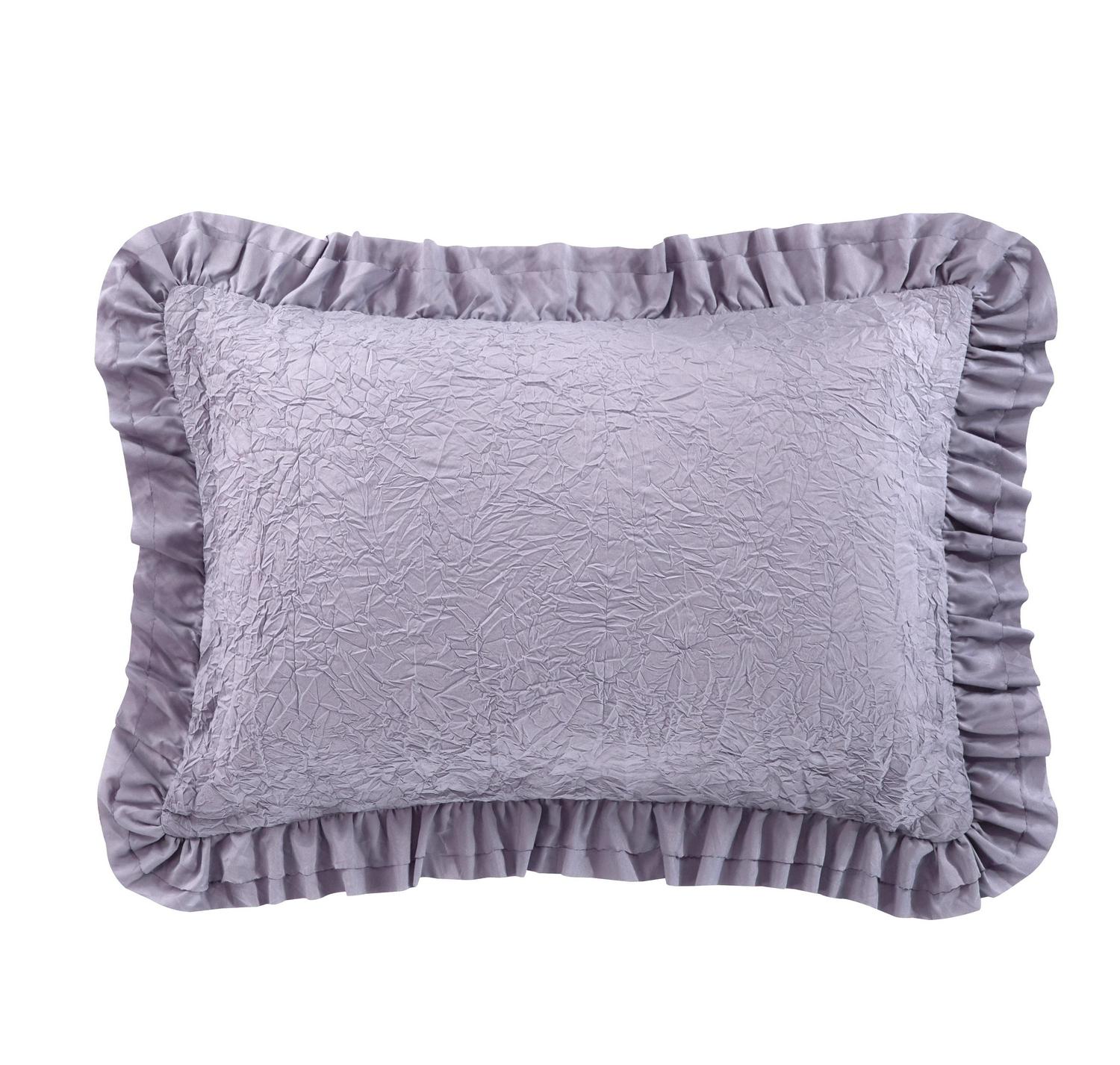 – CRINKLE CRUSH DESIGN – Laid back washed crinkle look on the face with a double layer flange border – Unique decorative pillows and a design coordinated sham included