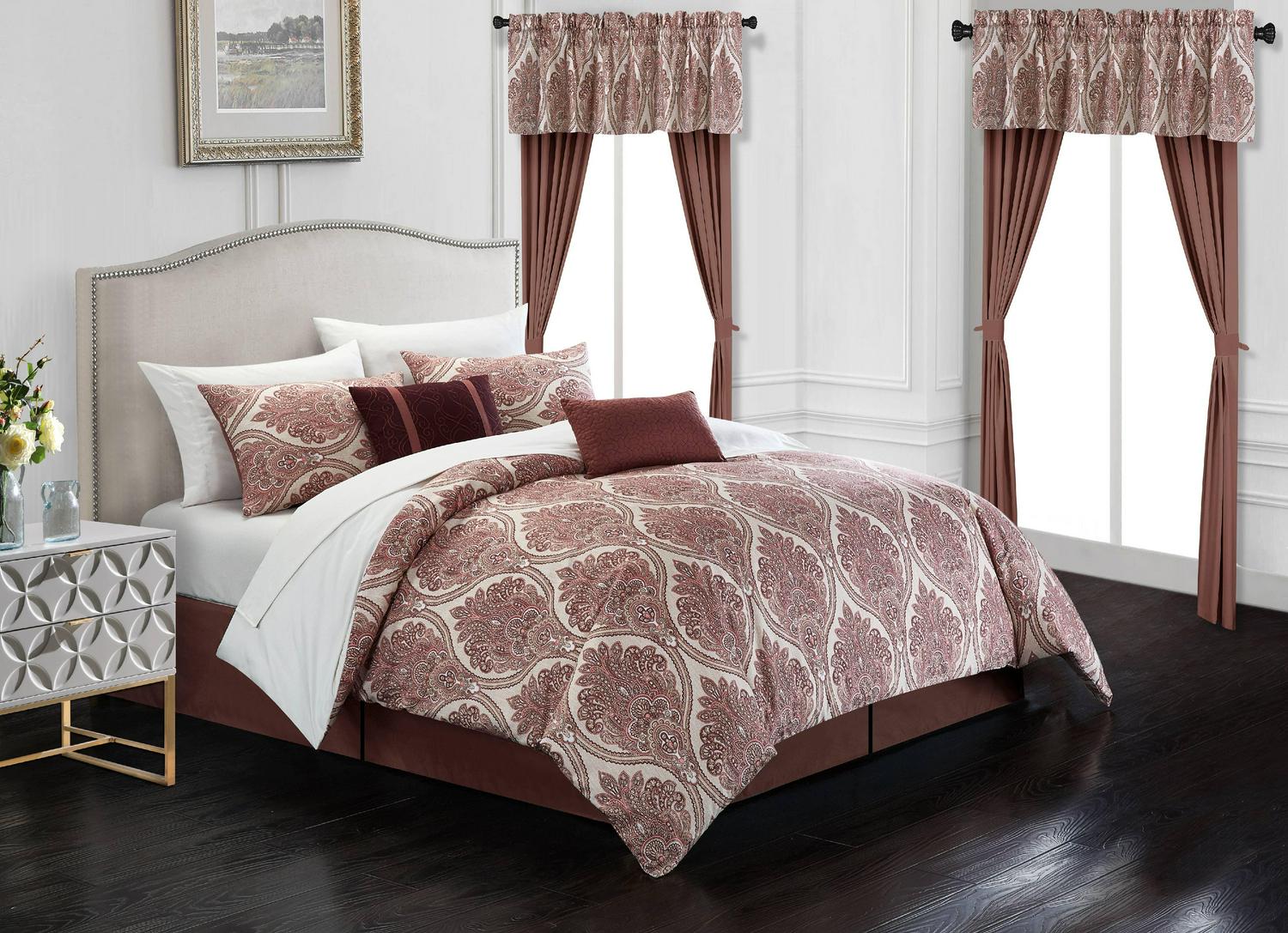 Chic Home Katniss 20-Piece Geometric Comforter Set, Queen, Brick