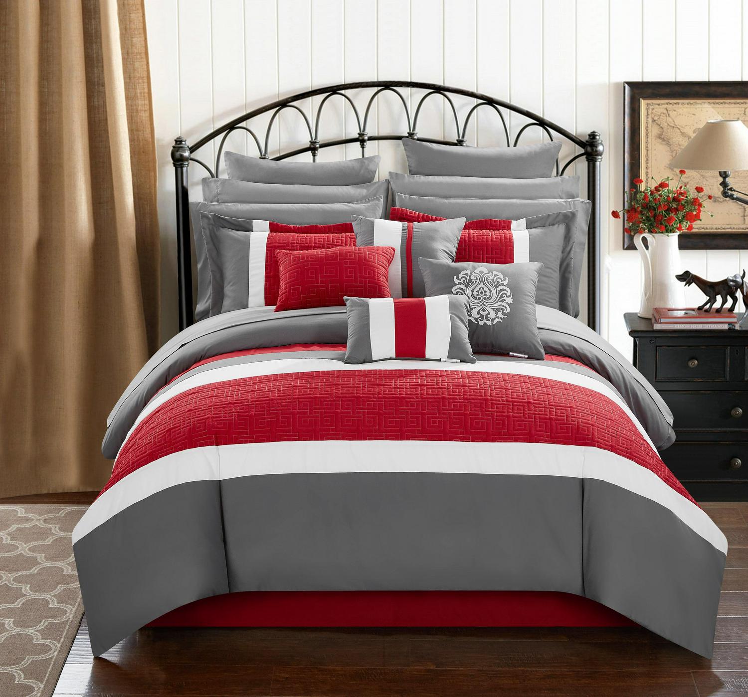 Chic Home Keira 16-Piece Color Block Comforter Set, Queen, Red