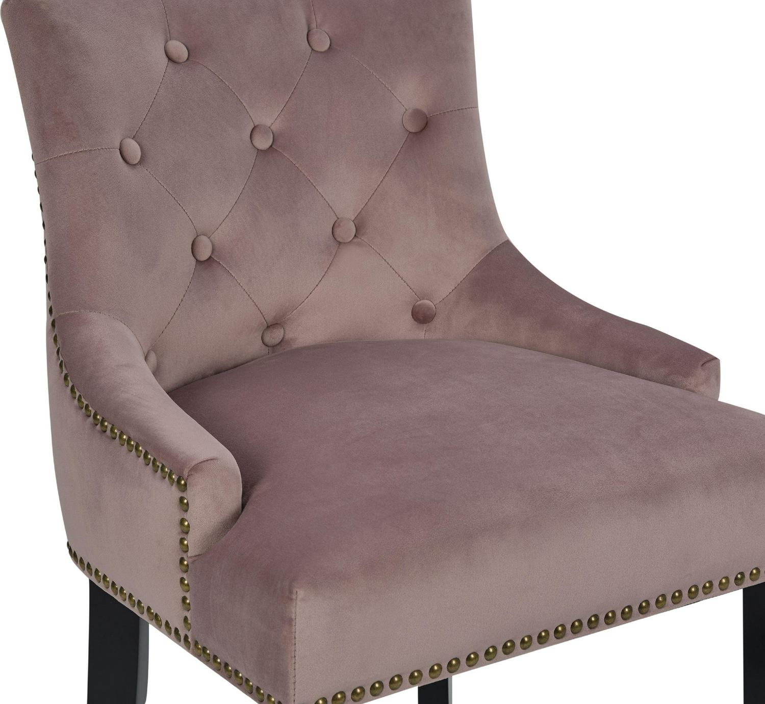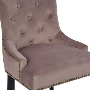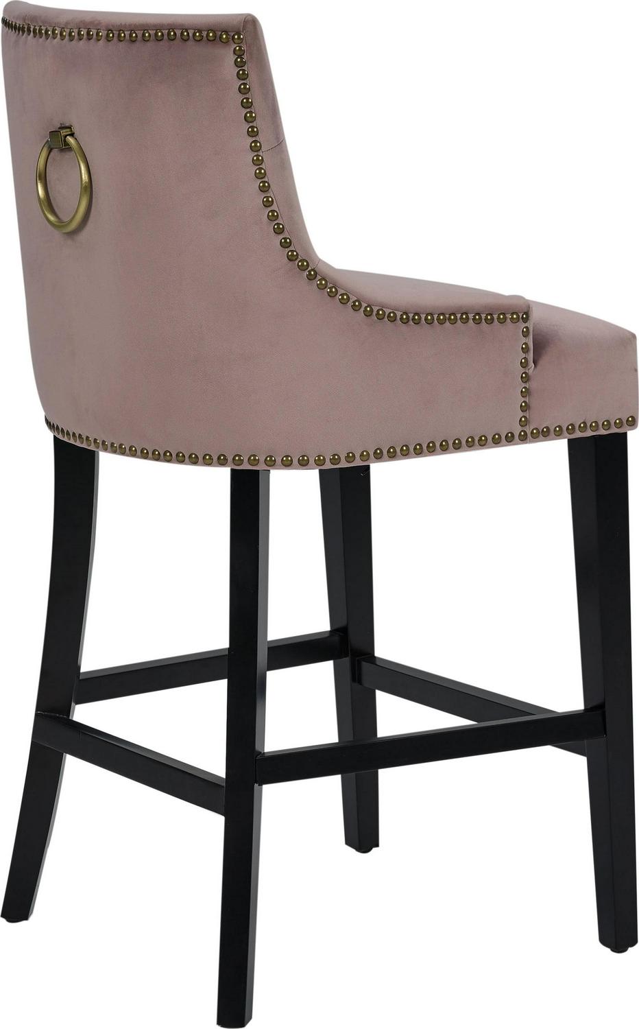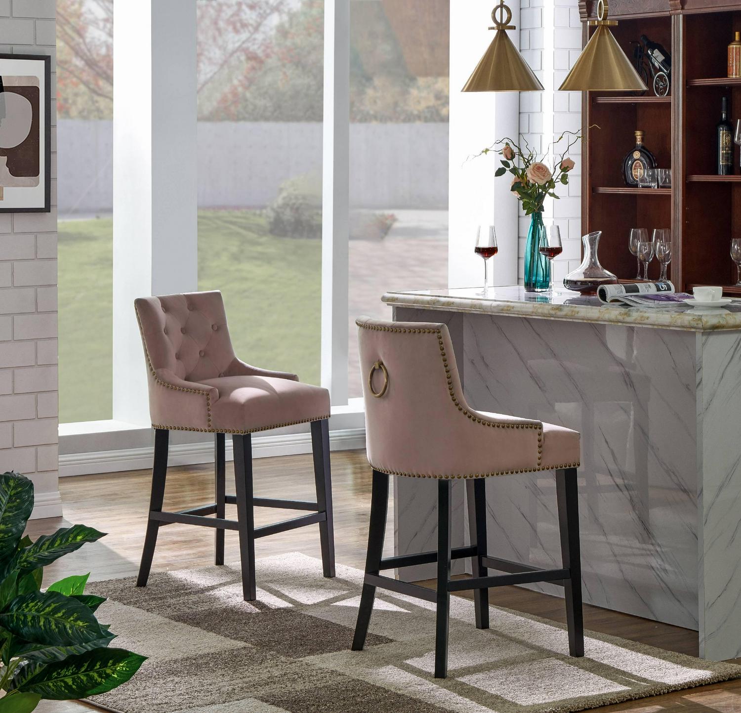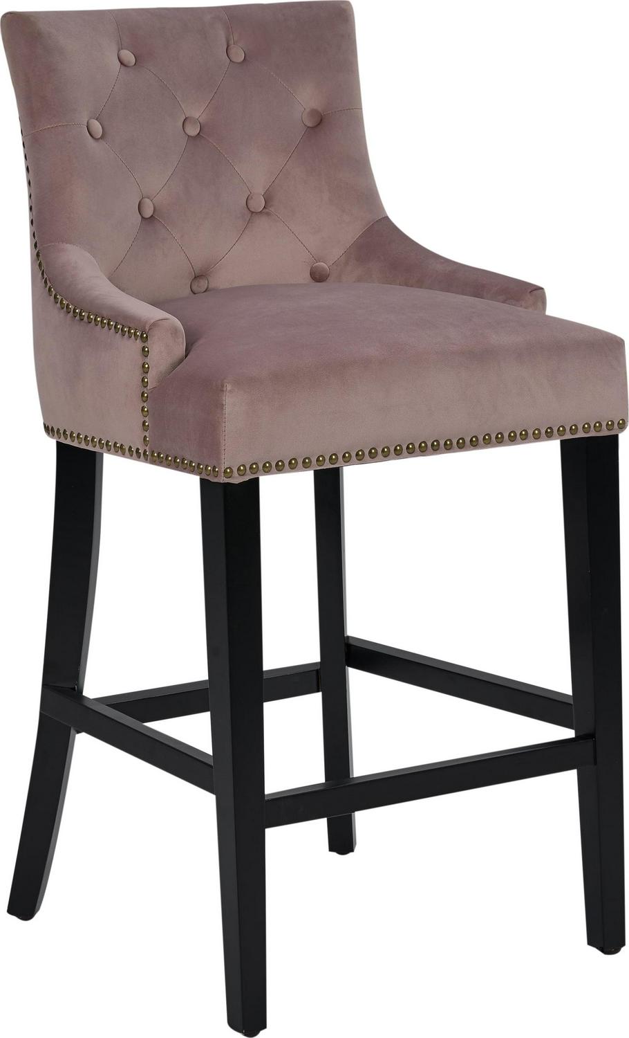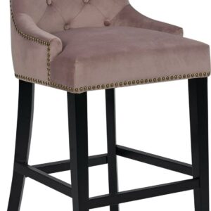 – THE BEST SEAT IN THE HOUSE From its button tufted luxe velvet upholstered swoop arm seat with nailhead trim and pull ring to its espresso finished tapered legs and footrest bar every detail on this counter stool highlights “form meets function”