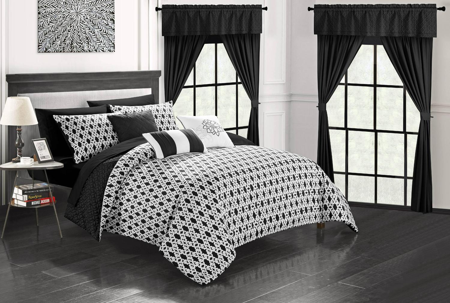 Chic Home Liron 20-Piece Reversible Geometric Color Comforter Set, King, Black
