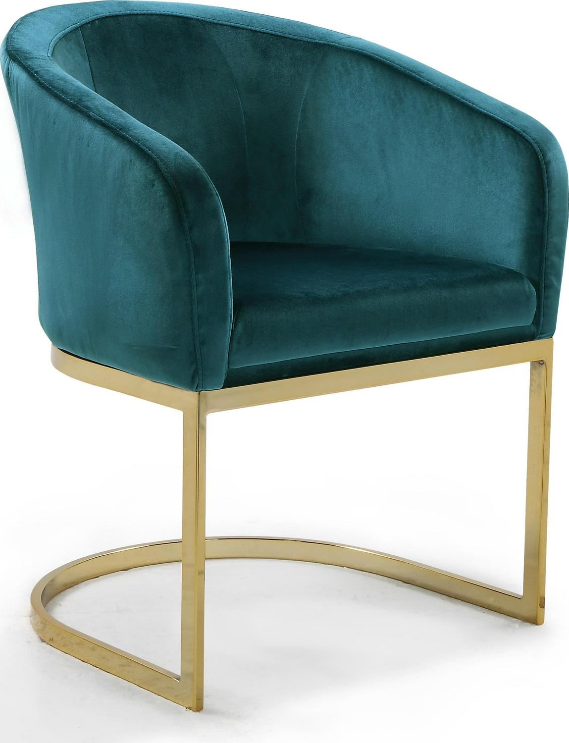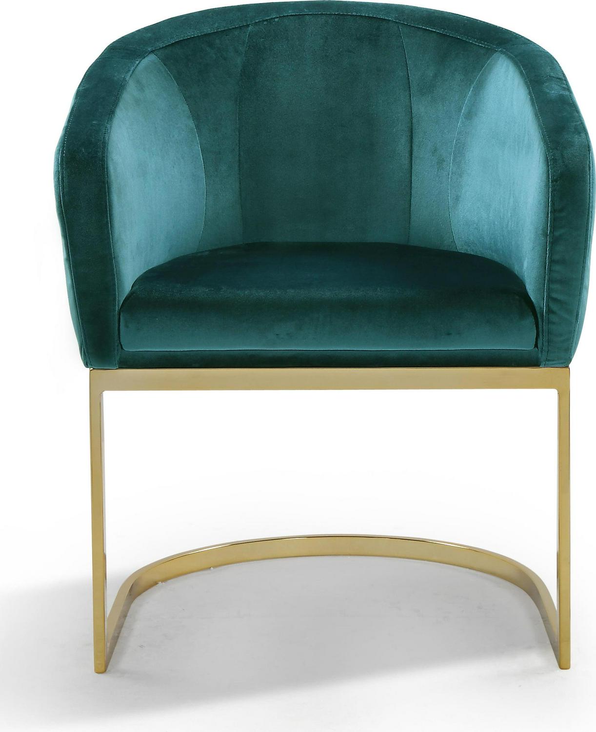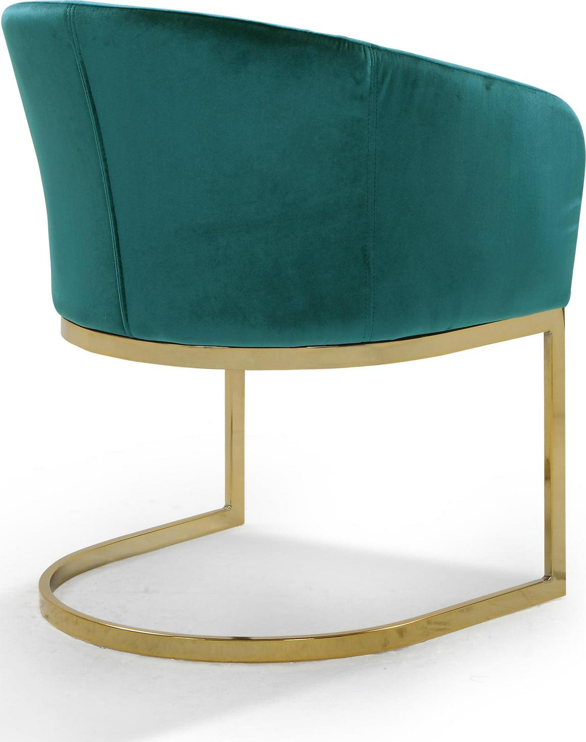 This accent chair makes a bold modern statement, the clean architectural lines are created by a substantial, sculptural gold-plated half-moon metal frame. Materials are velveted fabric upholstery, multi-density foam seating, and a solid metal rod base. Design is contemporary shell design with clean, sleek lines that create a look that fits a contemporary or urban setting. Features luxurious plush multi-density cushions to relax in comfort and style, place two together to create a conversation area. Built to last with premium fabrics, materials, and expert craftsmanship.
