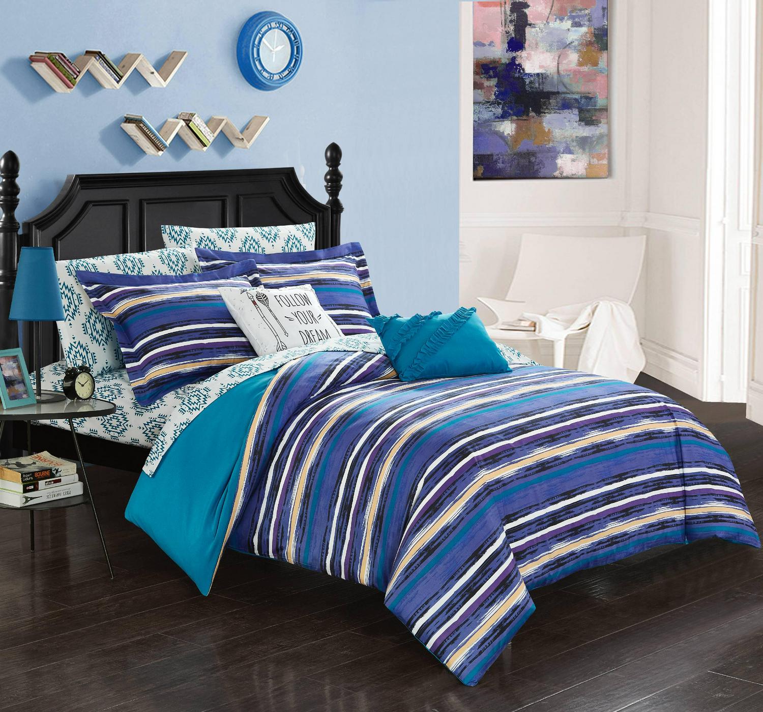 Chic Home Marisol 7-Piece Reversible Geometric Comforter Set, Twin, Blue