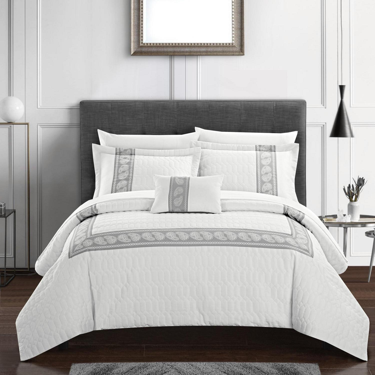 Chic Home Mason 6-Piece Applique Comforter Set, Twin, White