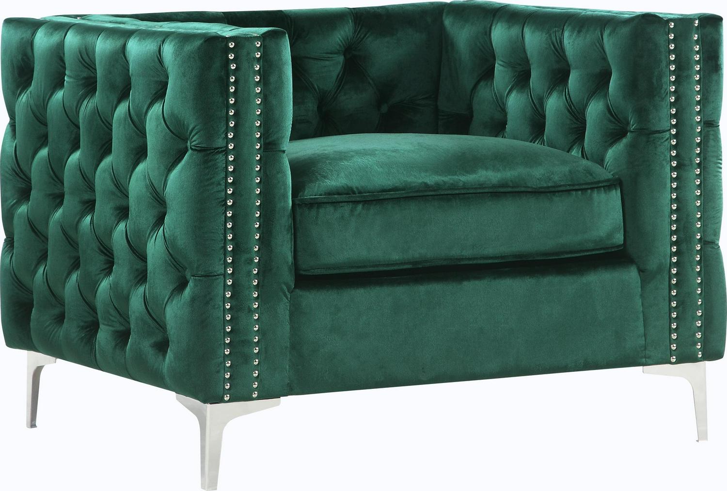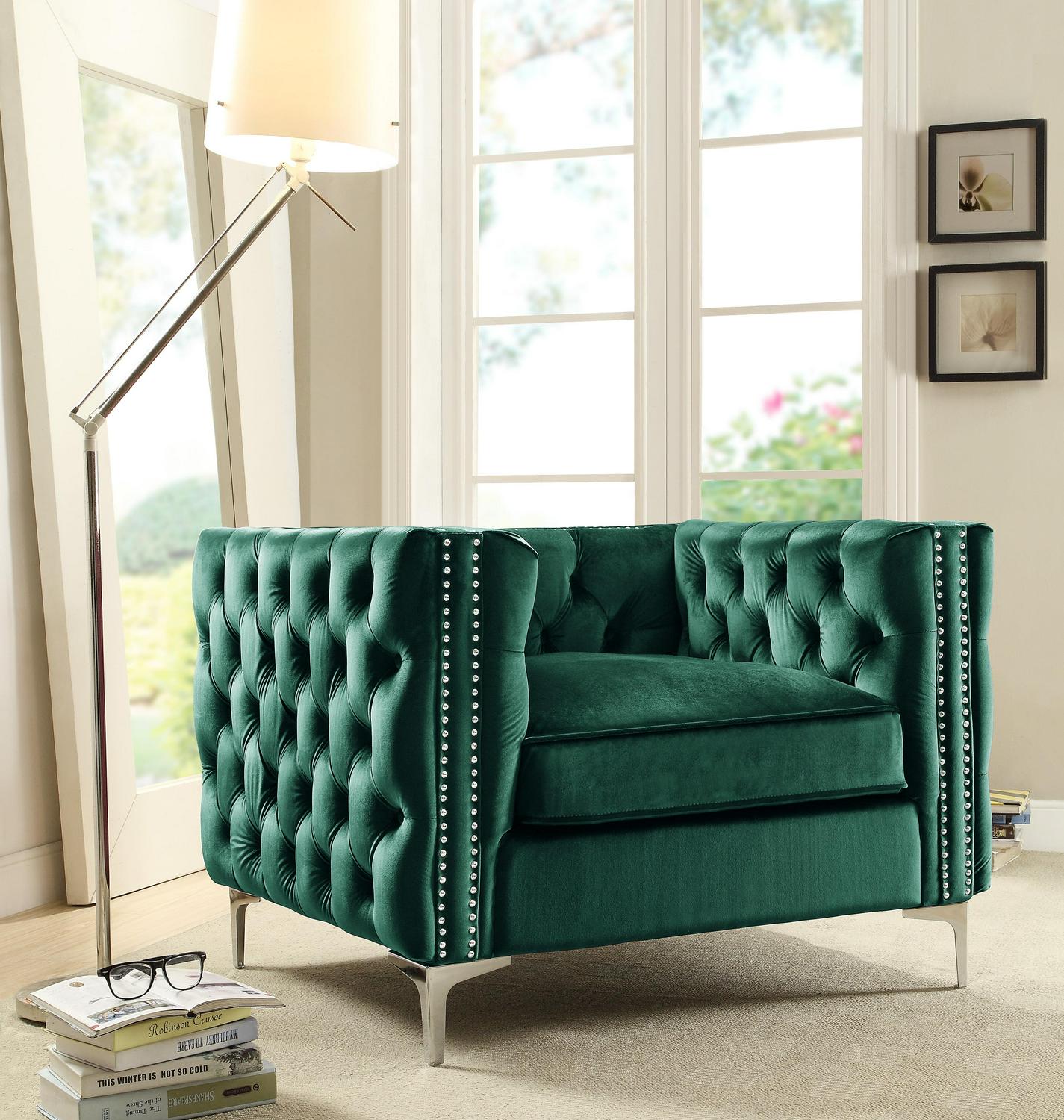Chic Home Monet Velvet Modern Contemporary Button Tufted with Silver Nailhead Trim Silvertone Metal Y-leg Club Chair, Green