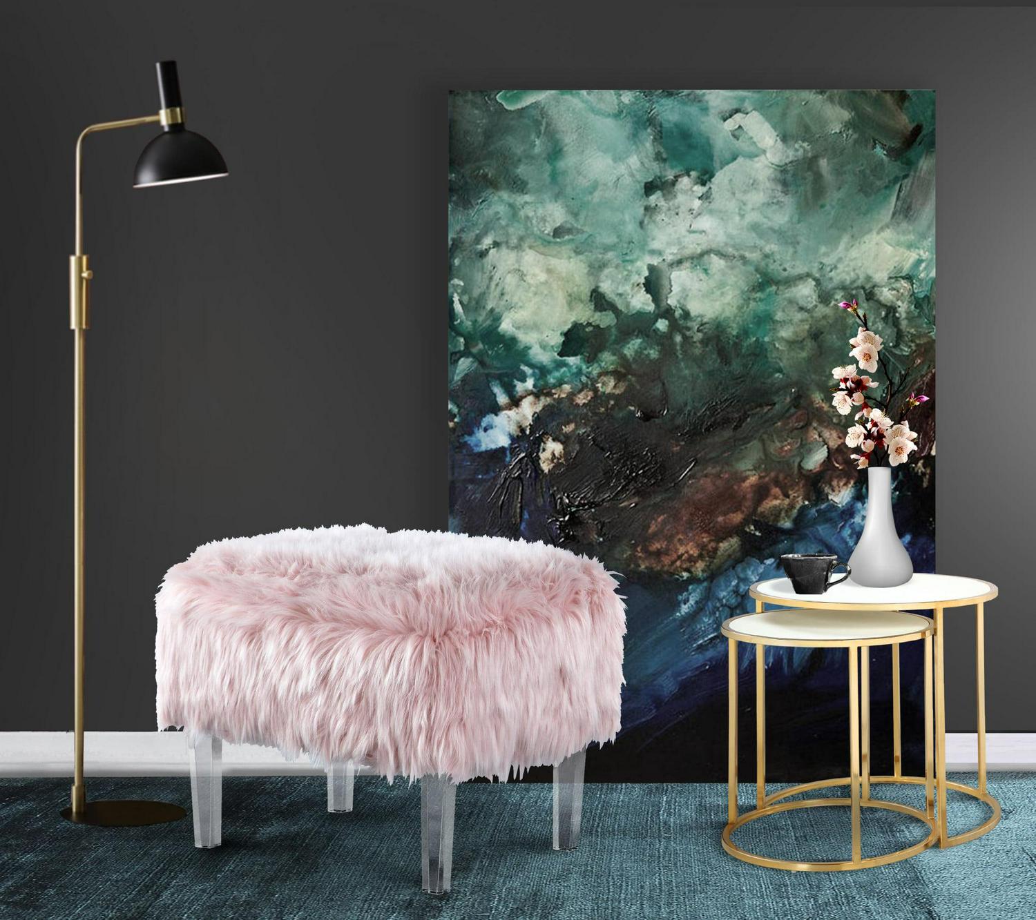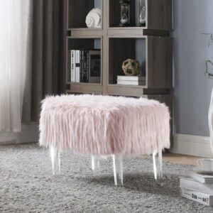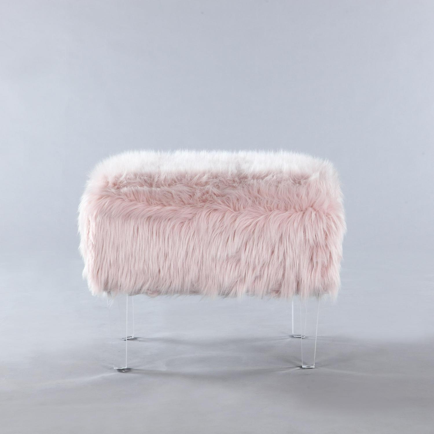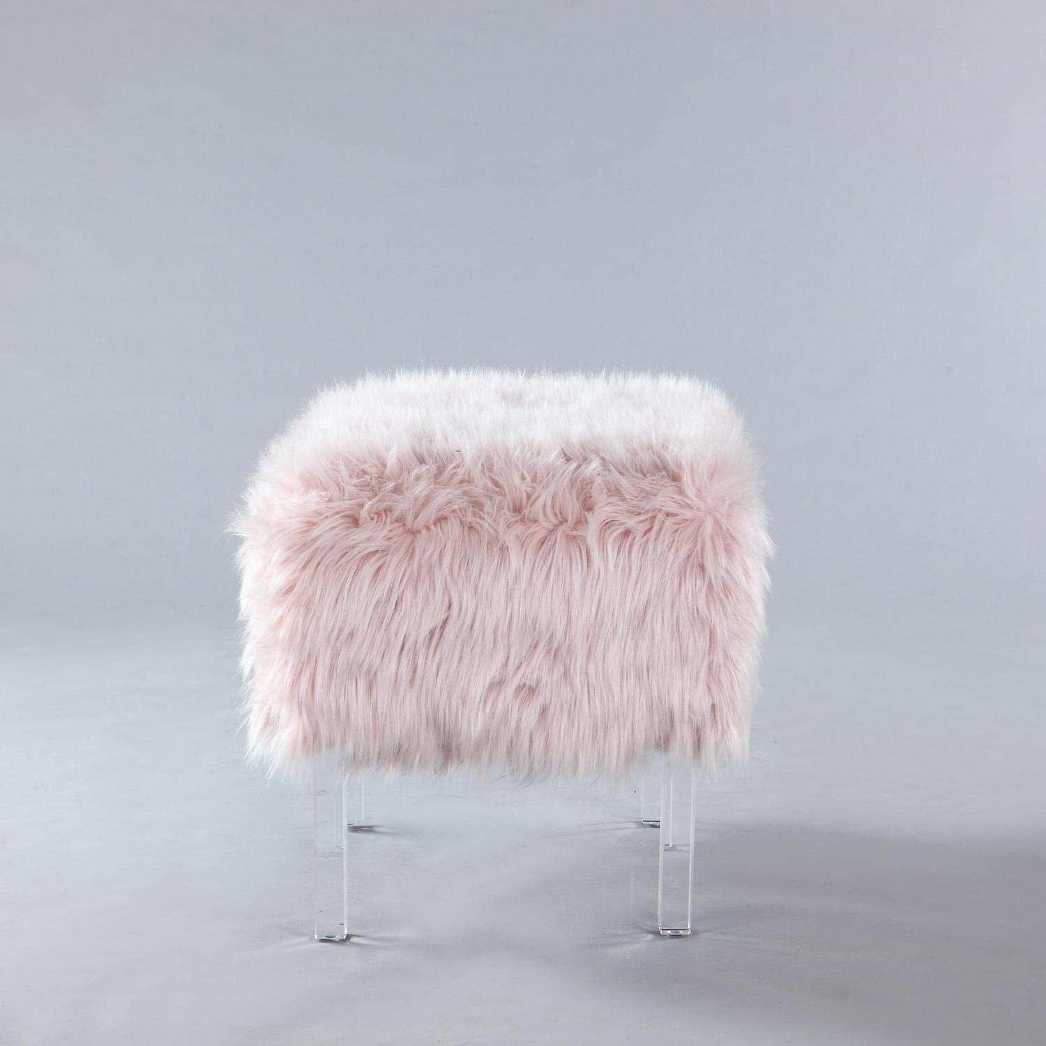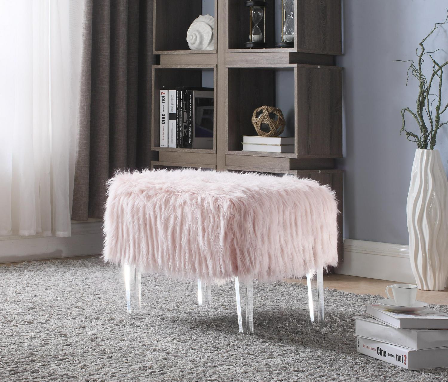– SITTING PRETTY Contemporary design abounds on the Fiorino Ottoman From fashionable faux fur to its streamlined acrylic legs, every detail makes for a beautiful and functional conversation piece This beautiful accent piece is perfect for your entryway, living room, den, lounge, bedroom or office Use as additional seating, place at the foot of a bed or in entryway and pass-through spaces. Often seen paired together as a set of two.