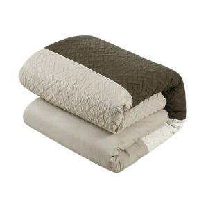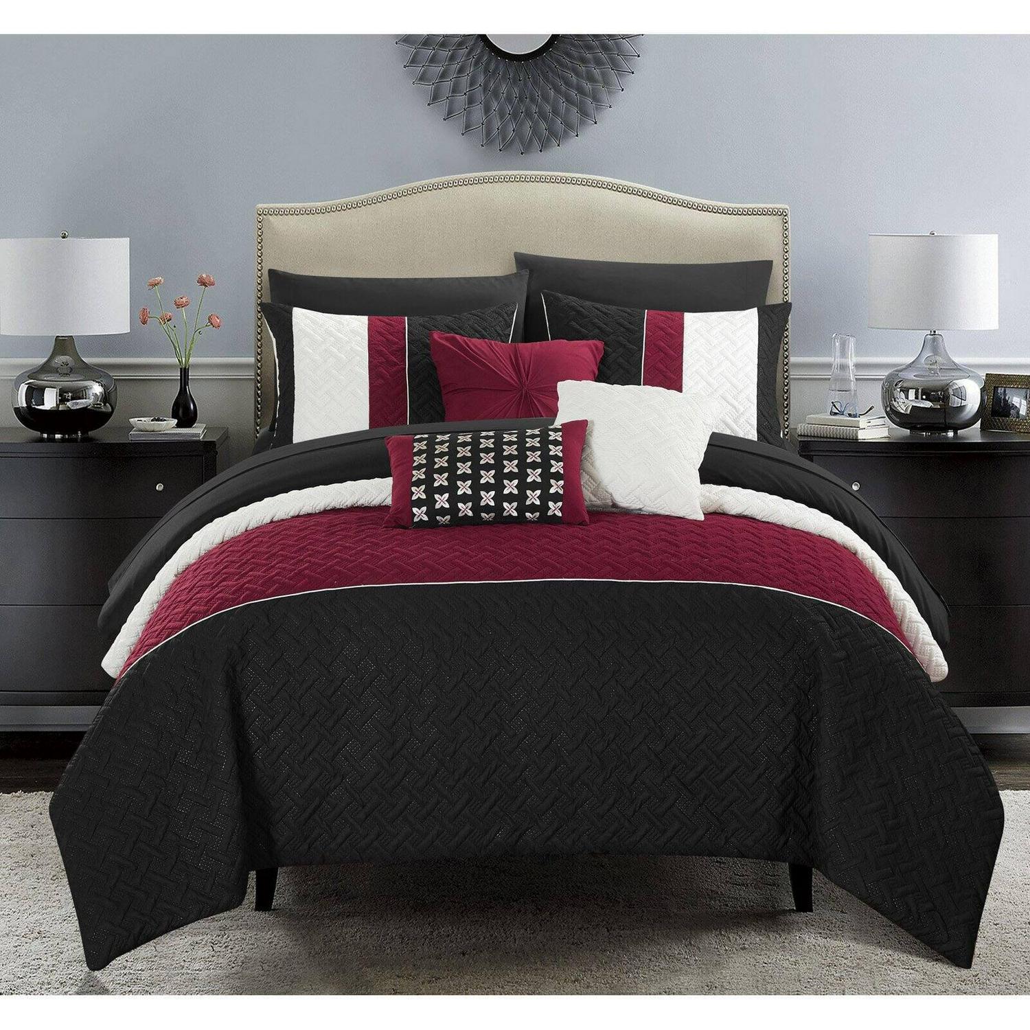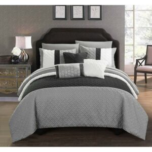 Chic Home Shaila 10 or 8 Piece Comforter Set Color Block Quilted Embroidered Design Bed in a Bag Bedding