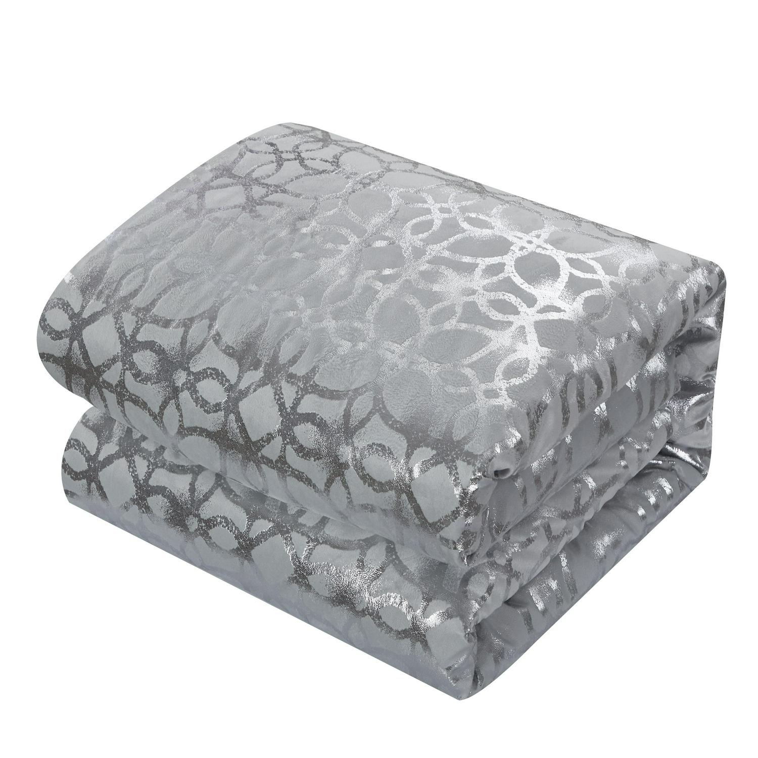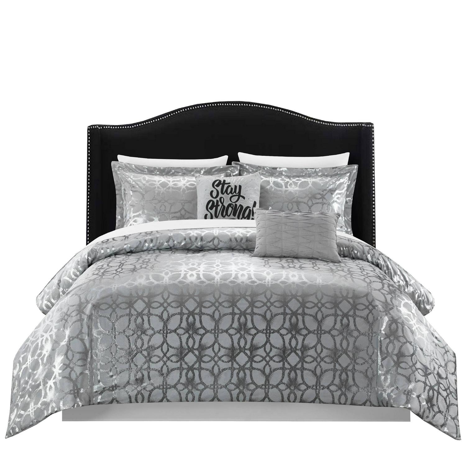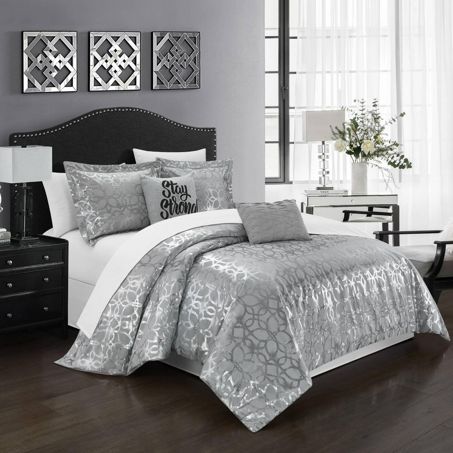 Chic Home Shea 9-Piece Metallic Lattice Pattern Bed in a Bag Comforter Set, Queen, Grey