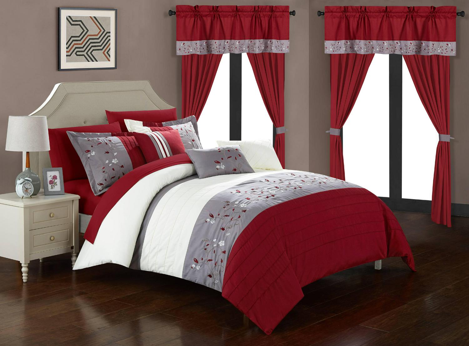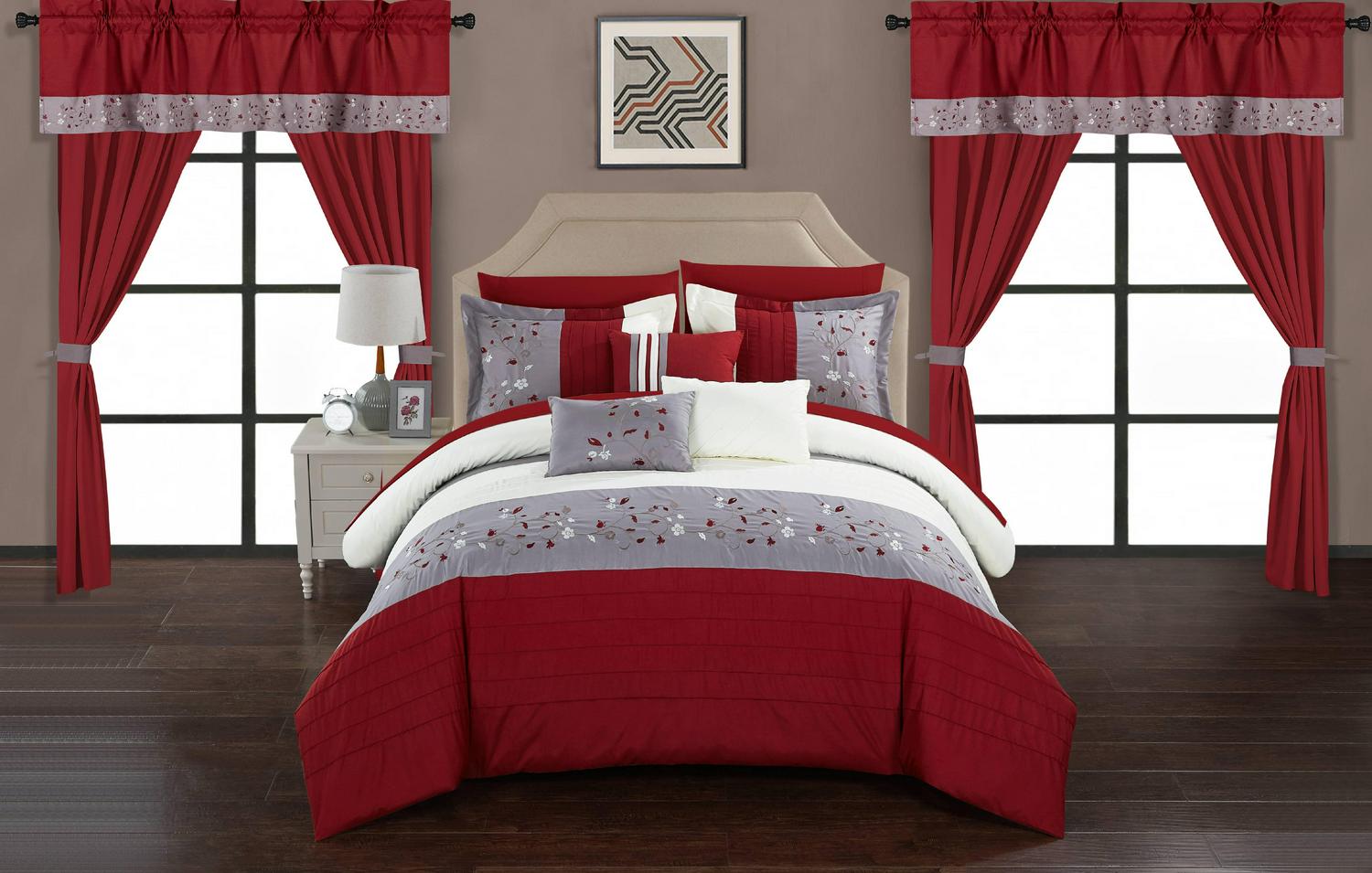 Chic Home Sonjae 20-Piece Floral Color Block Comforter Set, King, Red