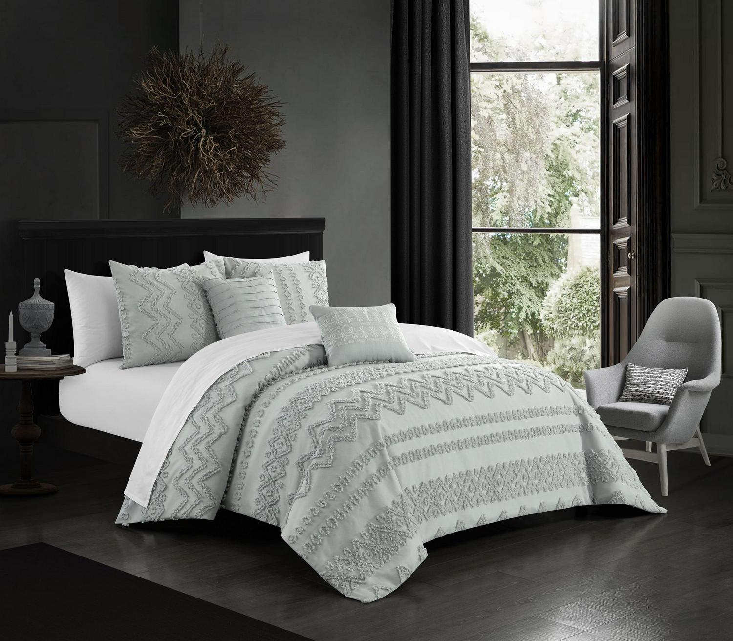 Chic Home Tyson 5-Piece Jacquard Geometric Comforter Set, Queen, Gray