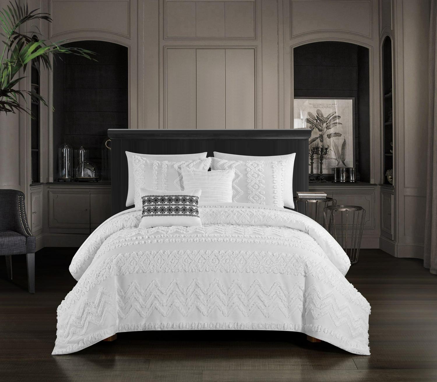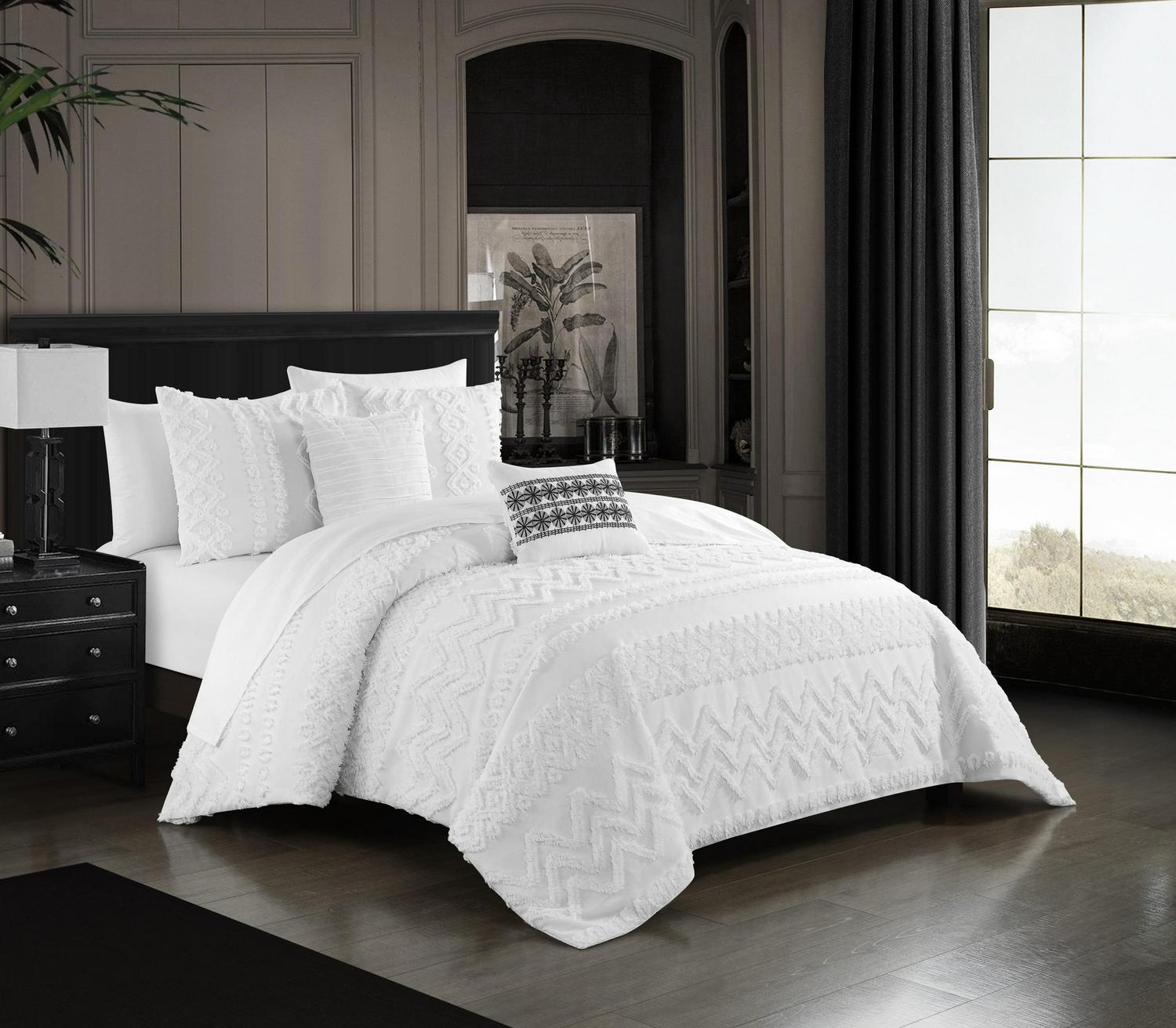 Chic Home Tyson 9-Piece Jaquard Chevron Geometric Comforter Set, King, White