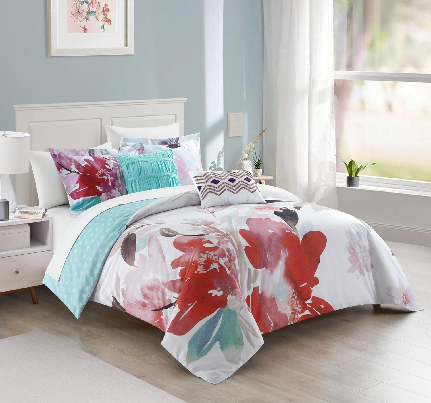 Chic Home Wally 7-Piece Reversible Floral Comforter Set, Twin XL, Multi Color