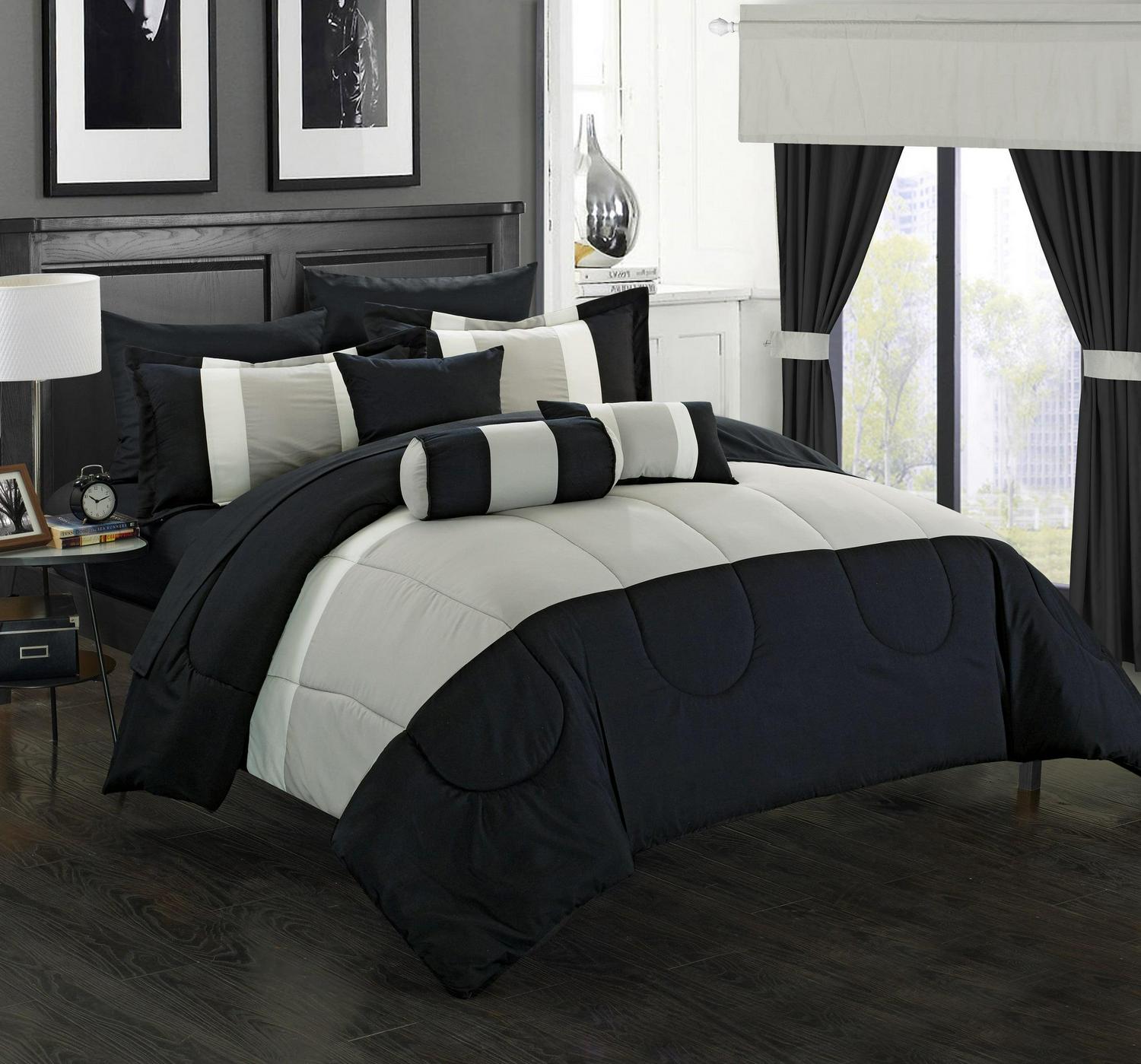 Chic Home Whitehall 20-Piece Color Block Comforter Set, Queen, Black