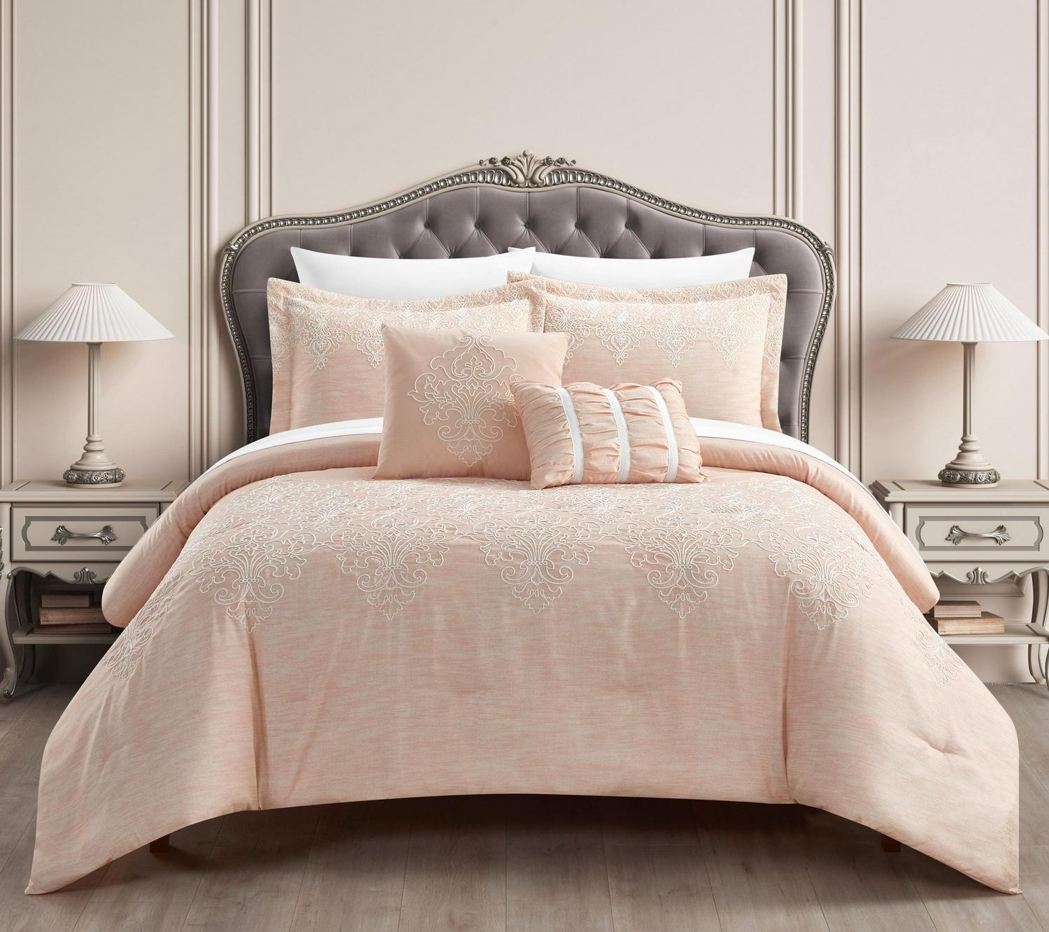 Chic Home Yasmine 5-Piece Embroidered Heathered Comforter Set, King, Blush
