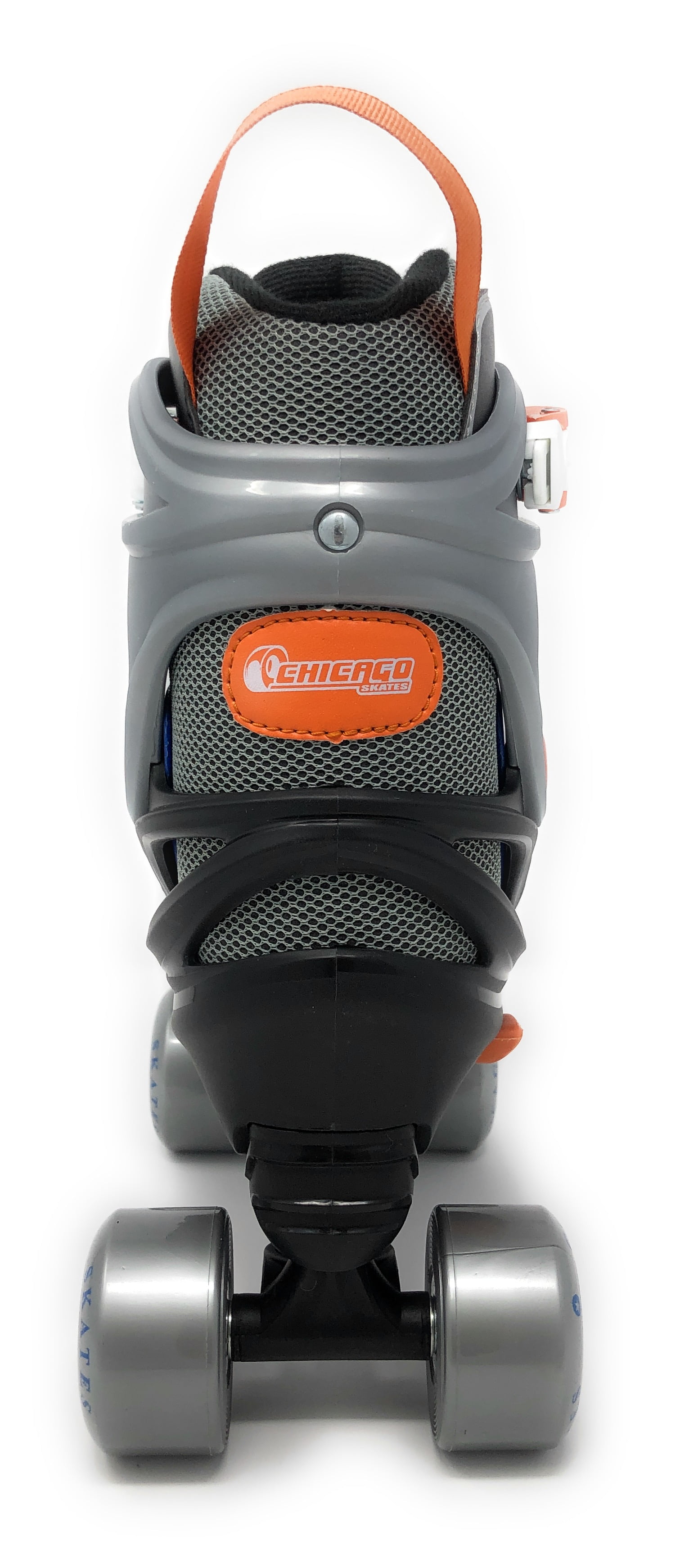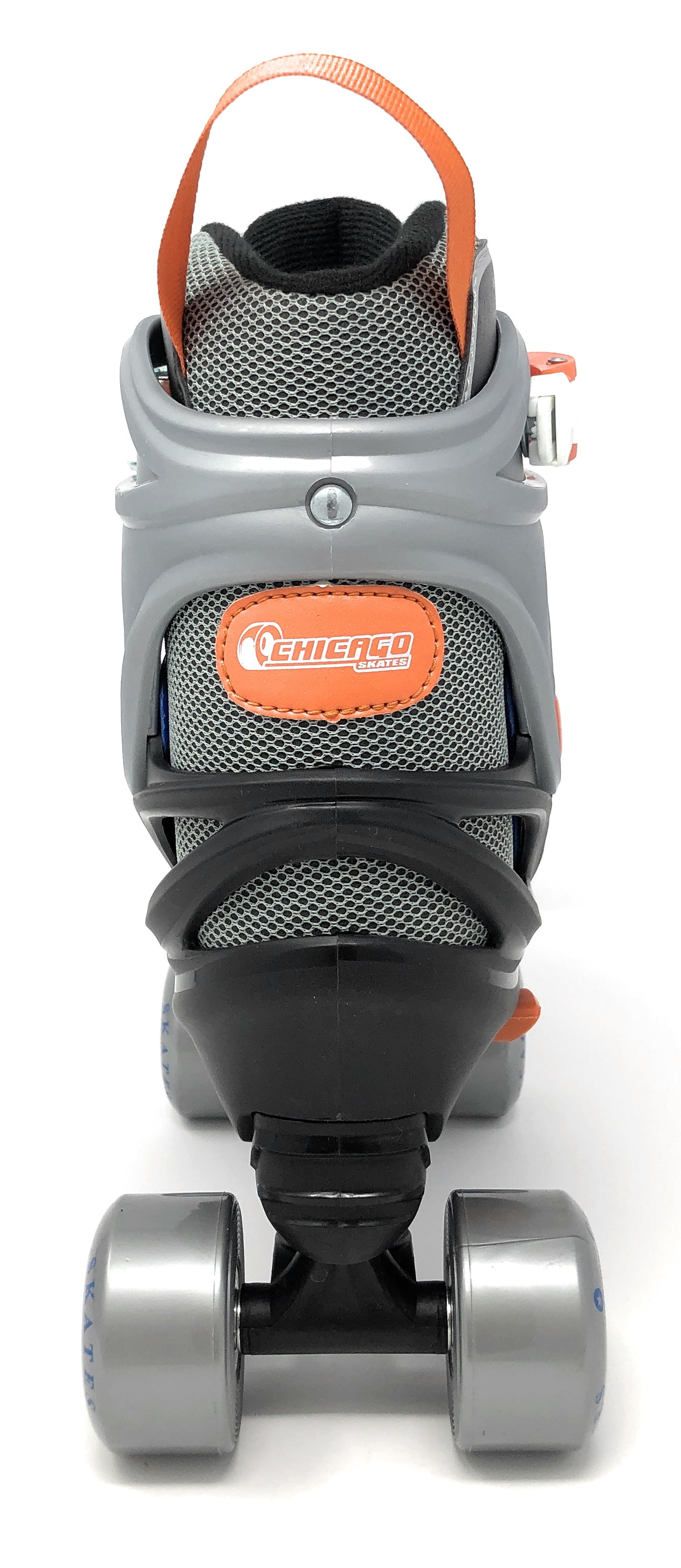 ADJUSTABLE QUAD SKATES: The classic, popular, most recognizable skate on the market. The Chicago Skates Adjustable Junior Quad Skates adjust four full shoe sizes with the push of a button. KEEP THEM ROLLING: Designed for the beginner, the Chicago Skates Adjustable Junior Quad Skates offer a multi-adjust boot that grows with the child as they hone their skating skills. COMFORT and SUPPORT: Hi-top silhouette, two-piece boot construction, padded collar, and two micro ratchet buckles deliver the perfect fit every time for a relaxing and secure ride. CONTROL and STABILITY: Expect excellent traction and stability delivered by the 60mm composite wheels with 608ZB semi-precision speed bearings. Built-in toe brakes for safe and reliable stopping power. Material: Plastic