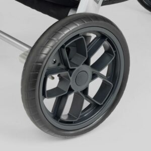 – Large wheels with treaded tires and all-wheel suspension for smooth strolling