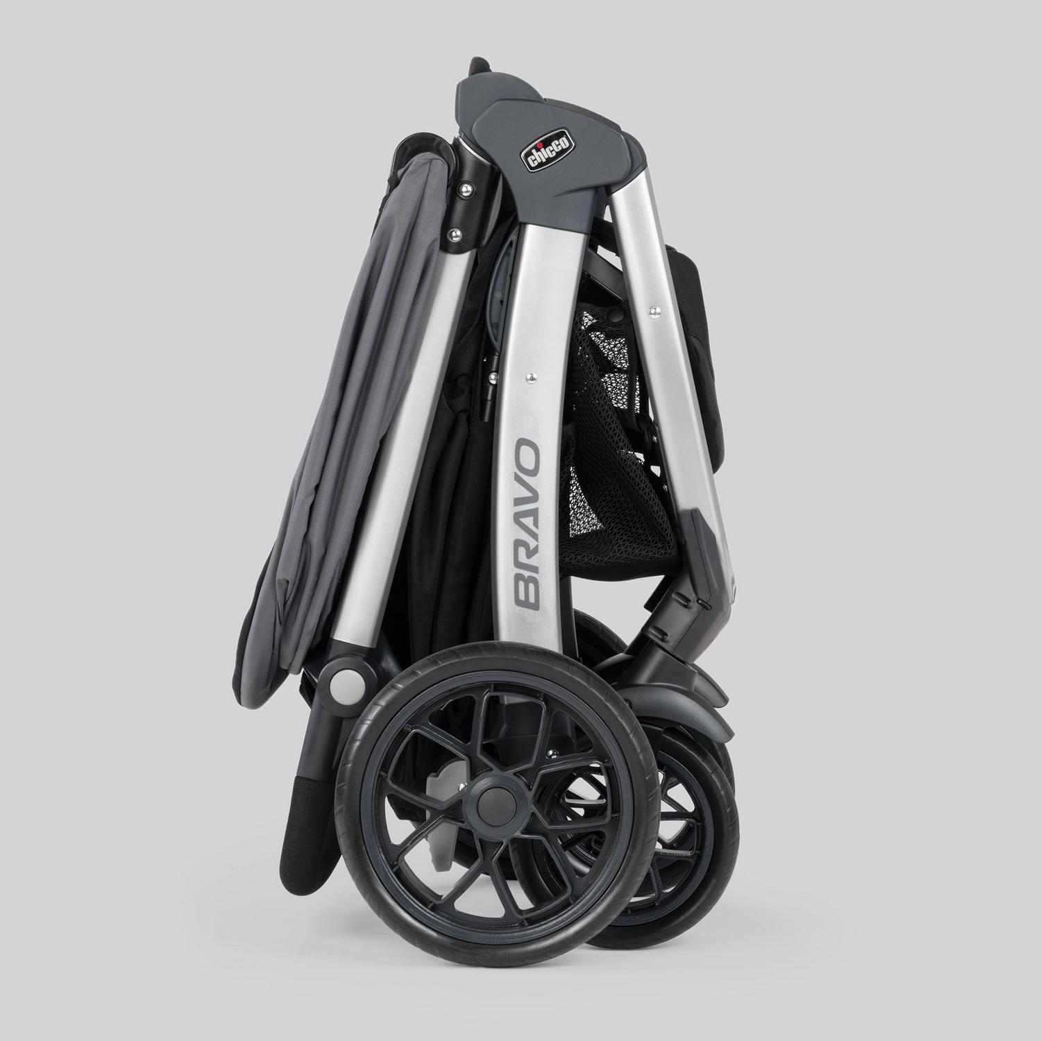 Make every outing feel like a walk in the park with the easy-to-use Bravo Quick-Fold Stroller. Three modes a lightweight infant car seat carrier, a versatile travel system and a full-size toddler stroller cater to your travel needs as your little one grows from newborn to toddler. A breeze to open and fold, the Bravo Stroller features a one-hand smart fold with auto-swivel wheels so it stands upright without the parent handle touching the ground.