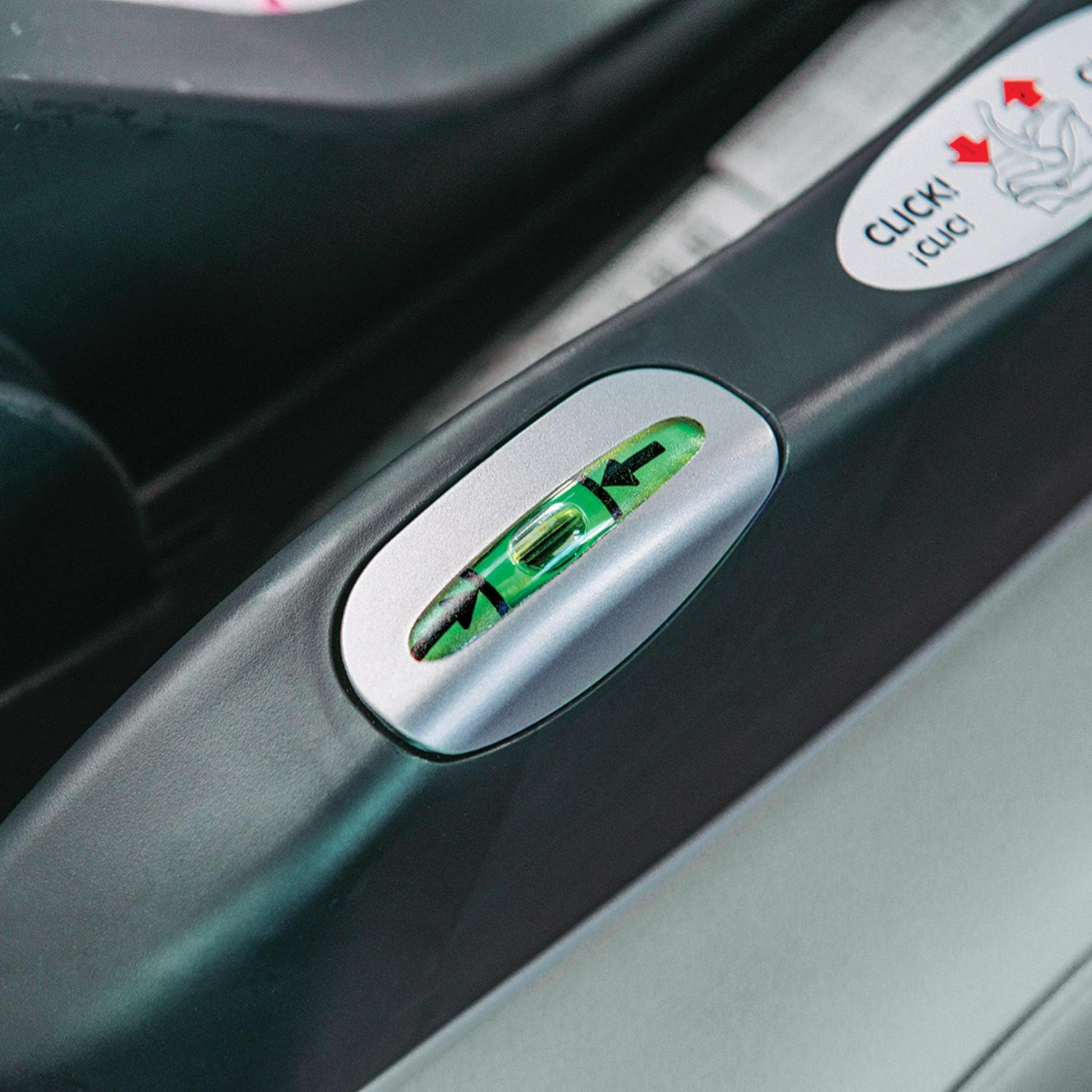 The included stay-in-car base has a ReclineSure leveling foot and two RideRight bubble level-indicators to help achieve and verify proper angle in the vehicle seat. The base is also equipped with premium LATCH connectors and a SuperCinch tightener for a secure fit with a fraction of the effort! For alternate installation with the vehicle seat belt, clear belt routing and integrated lock-offs make it easy to position, tighten and lock the belt into place. A smooth underside helps protect vehicle seats from damage.