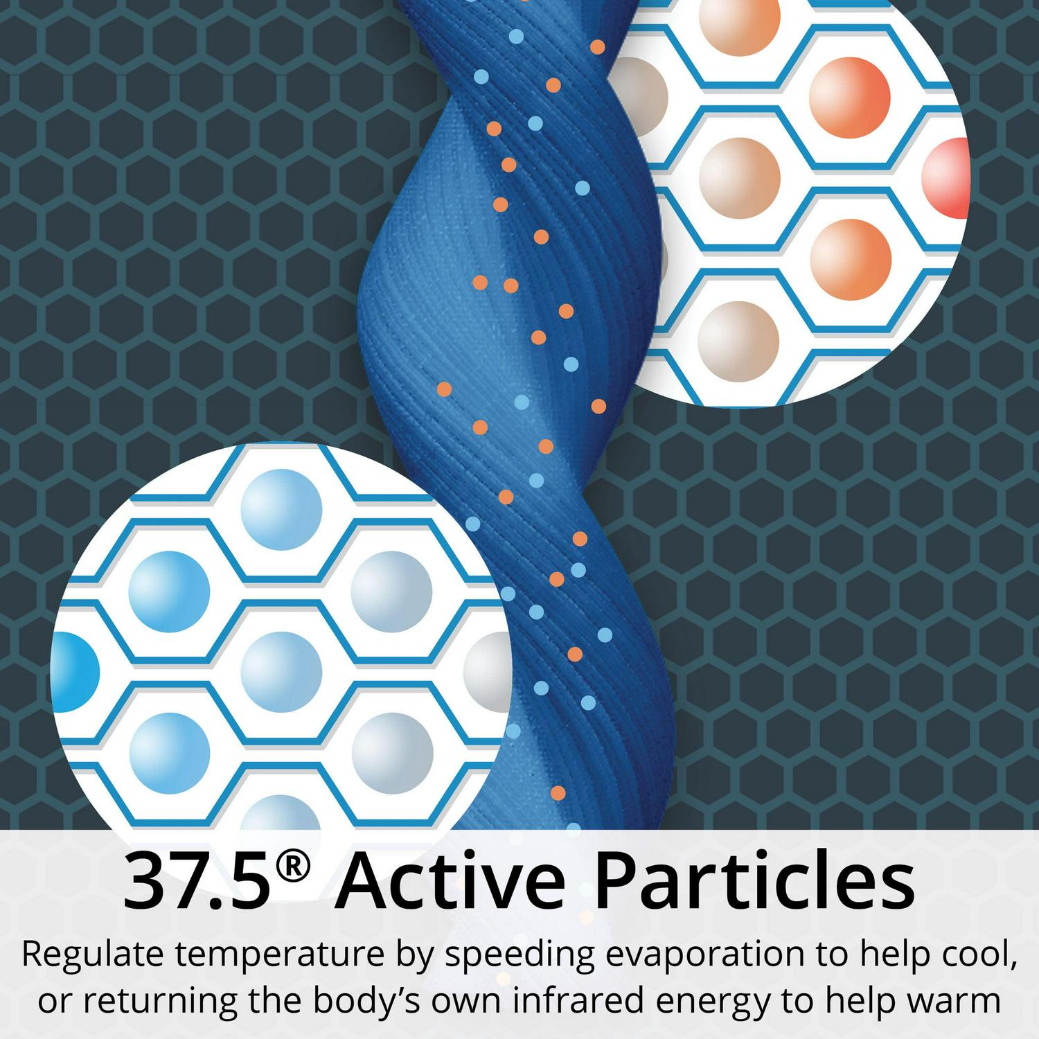 – Naturally derived volcanic mineral particles embedded in the fabric speed evaporation to help cool or return the body s infrared energy to help warm