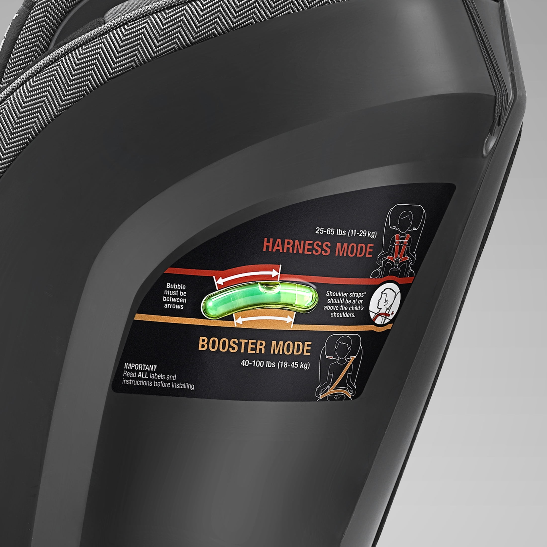 Converts from forward-facing 5-point harness to belt-positioning booster DuoGuard head & torso protection Steel-reinforced frame Deep ErgoBoost seat with dual-density padding and sloped, contoured design 9-position headrest accommodates growth throughout both modes 4-position recline helps improve child comfort and vehicle fit RideRight bubble levels make it easy to verify angle in vehicle seat Premium connectors for installation with LATCH LockSure lock-offs and wide belt routing for installation with seat belt 2 dishwasher-safe CupFolders with push-button removal Make a statement in the bold, sporty look of the Atmosphere fashion. Atmosphere features a black and grey mesh-patterned knit against a black backdrop and accented by bright red trim for a vibrant pop of color.