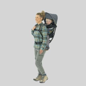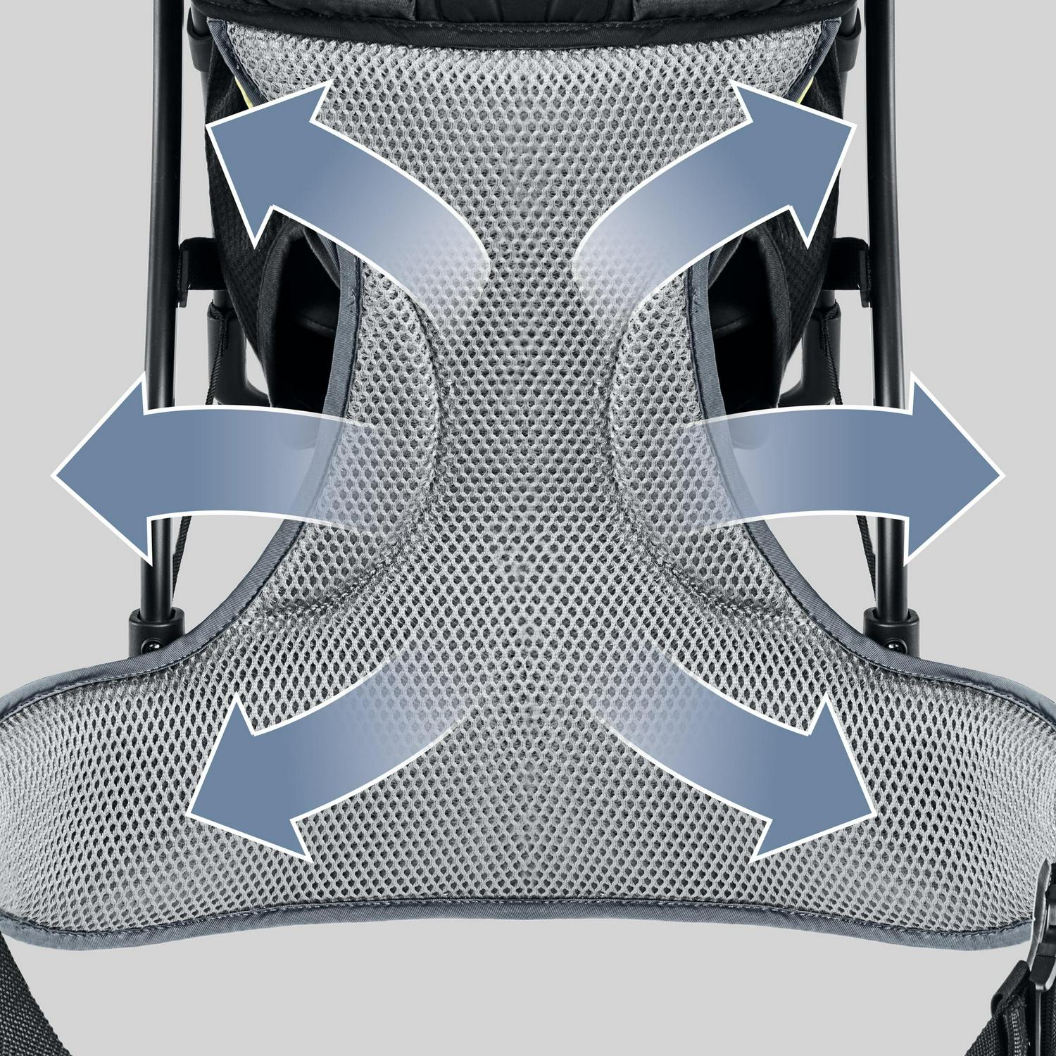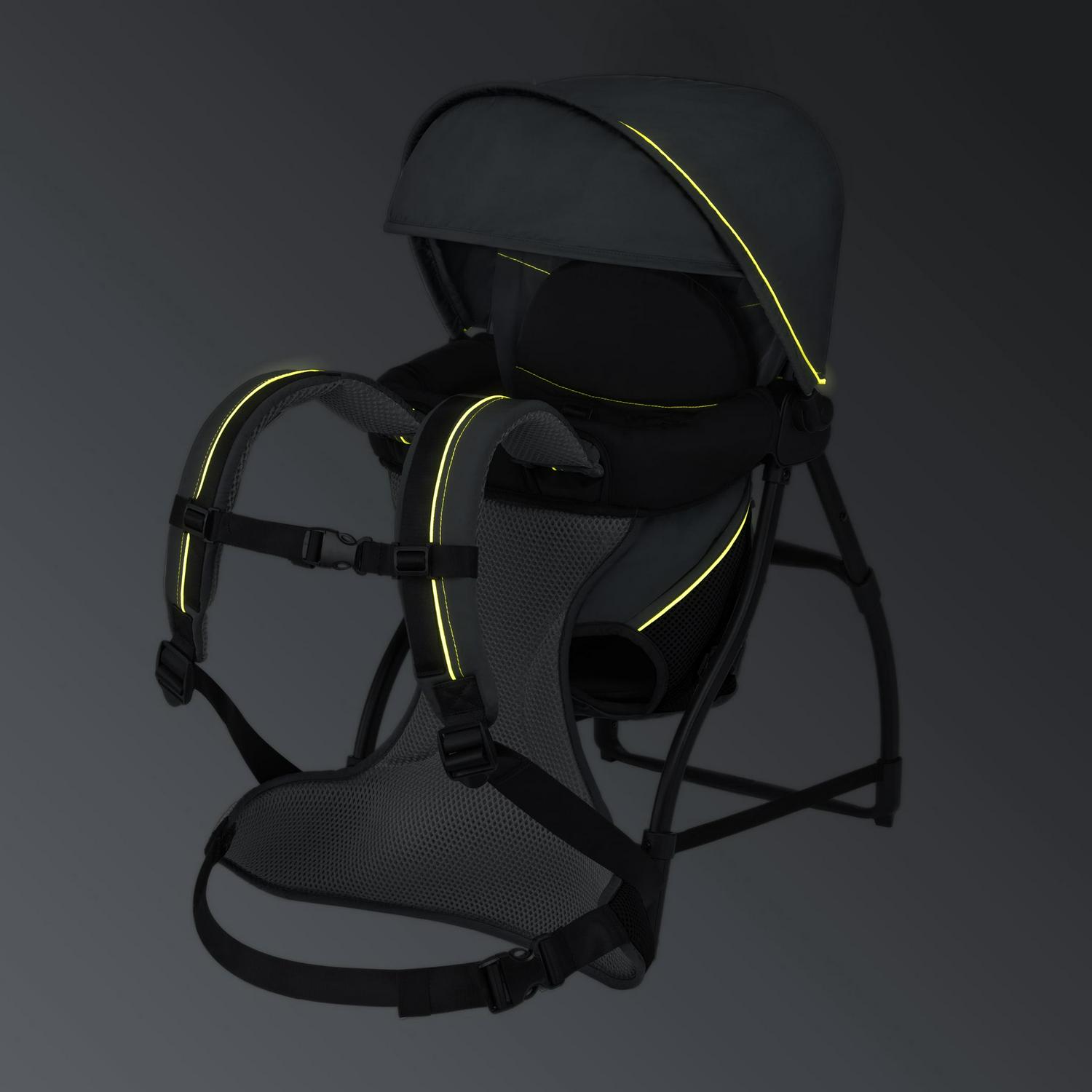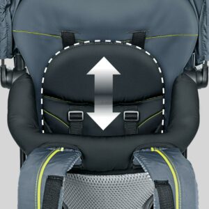 For the adult wearer, padded ergonomic shoulder and waist straps on the baby backpack carrier easily adjust to create a custom fit. The aluminum frame evenly distributes weight, while 3D breathable mesh on lumbar, back and straps offers increased ventilation, providing comfort for parents even in warmer temperatures. Convenient side pockets store snacks and small necessities.