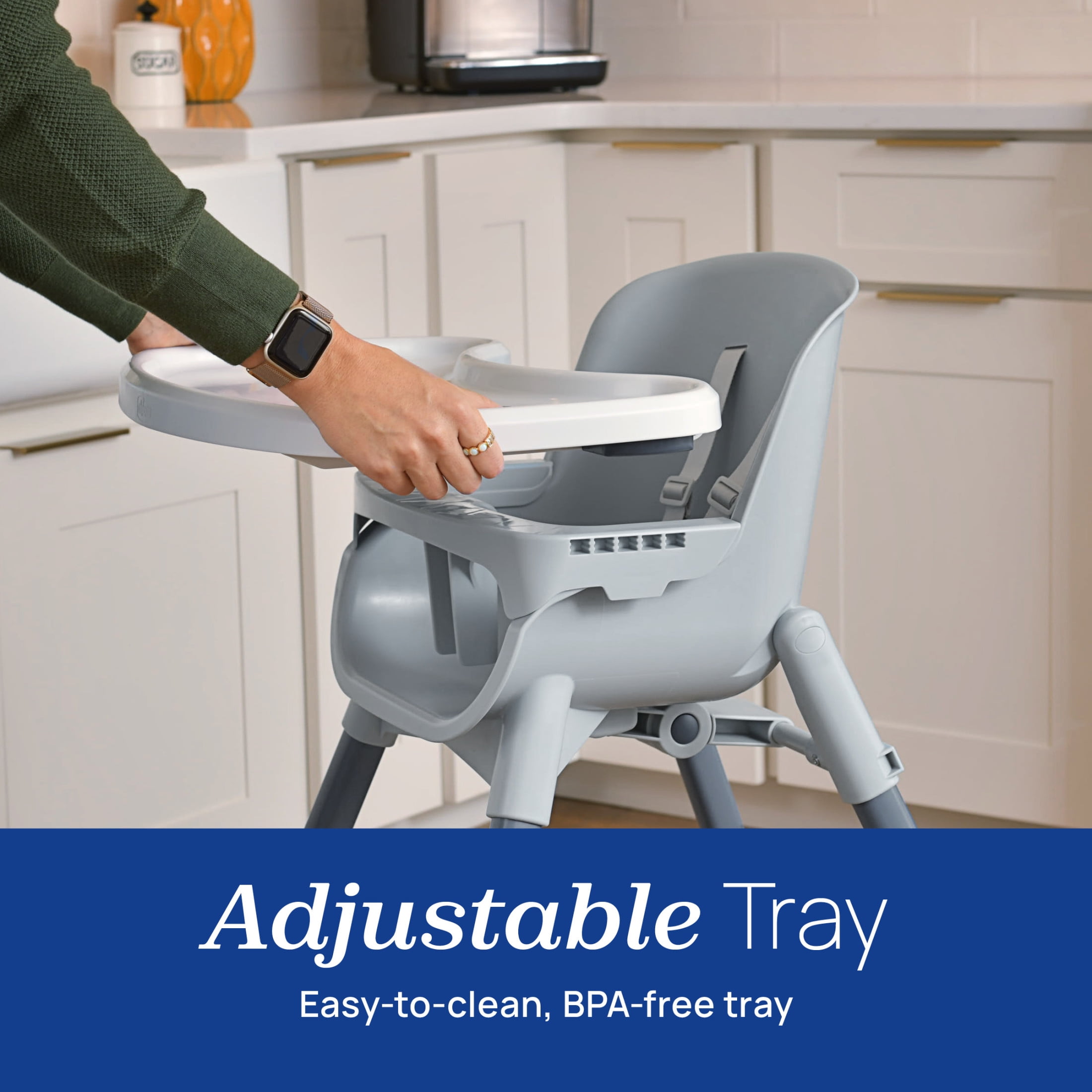 Enjoy the essence of mealtime with the simplicity of the Chicco Zest™ 4-in-1 Folding High Chair. This multi-use chair grows with your child from their first bites through their favorite big kid activities. With a minimalist design and smooth lines, the one-piece seat shell is a breeze to clean. The Chicco Zest™ offers the convenience of a standard table height high chair with a wipeable seat, 5-point harness and BPA-free removable tray. The removable leg extensions create a low-to-ground feeding chair or a perfect toddler-sized chair with the removal of the harness and tray. As your child gets older, the high chair also converts into a sturdy, table height youth stool.