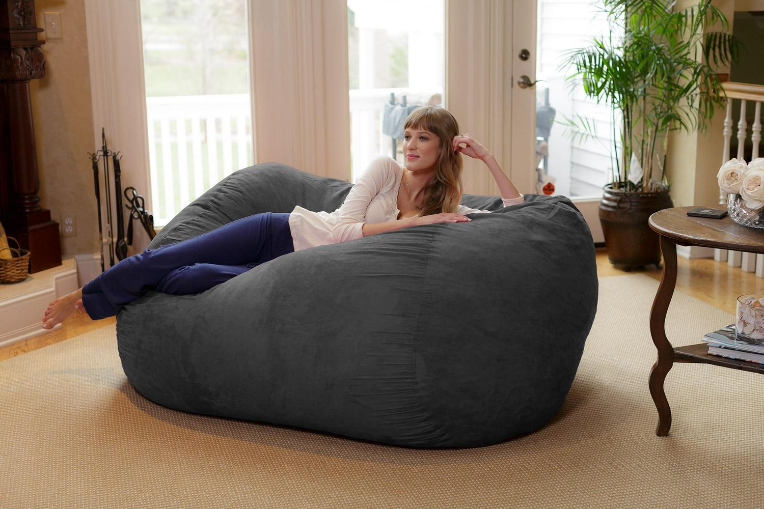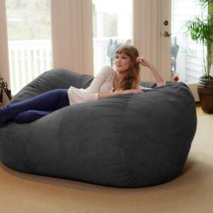 Chill Sack Bean Bag Chair, Memory Foam Lounger with Microsuede Cover, Kids, Adults, 6 ft, Charcoal