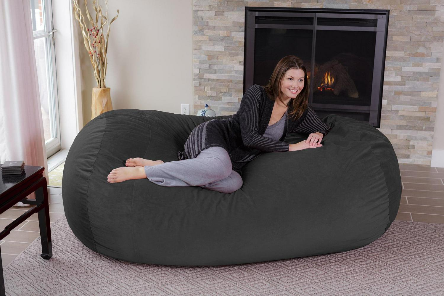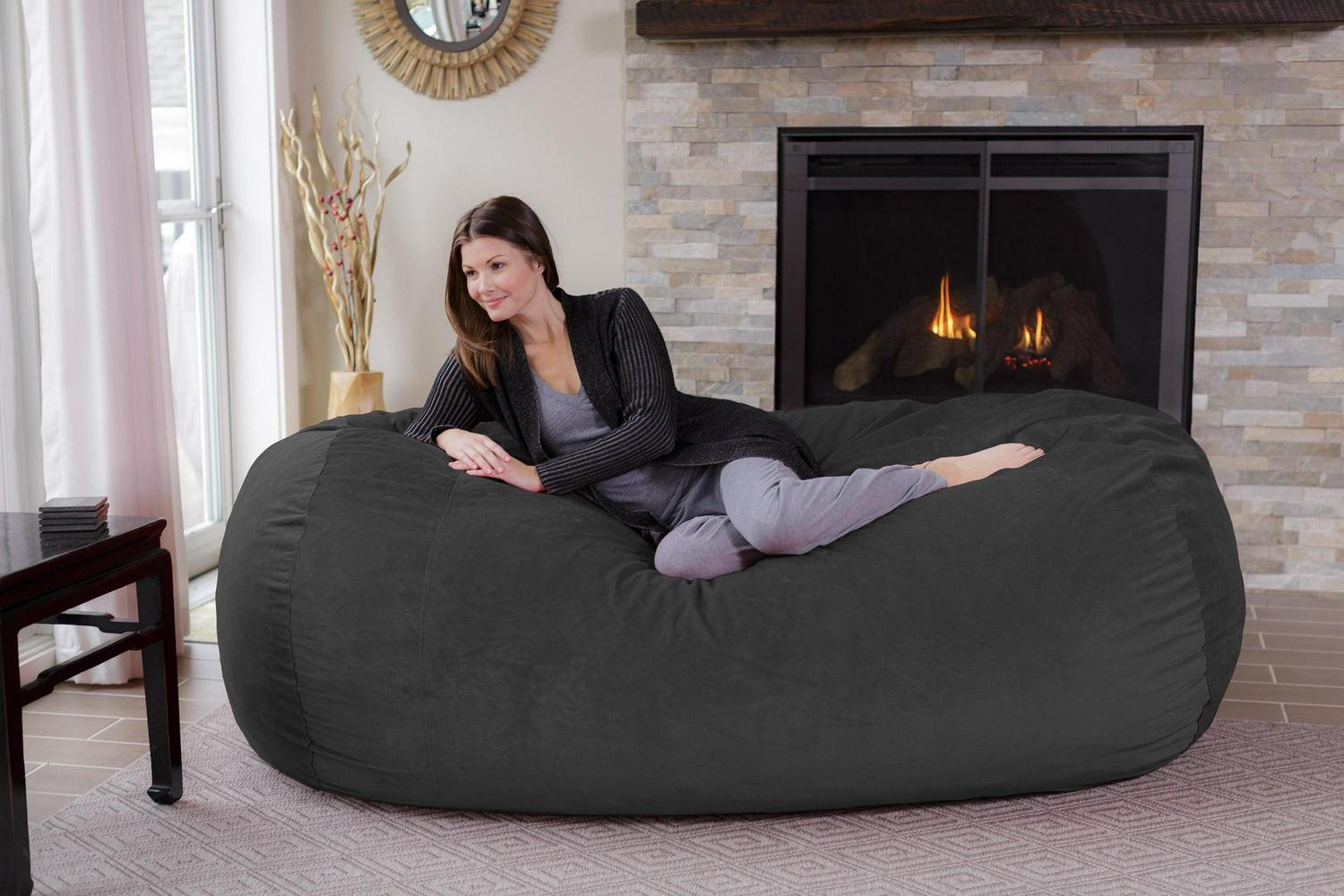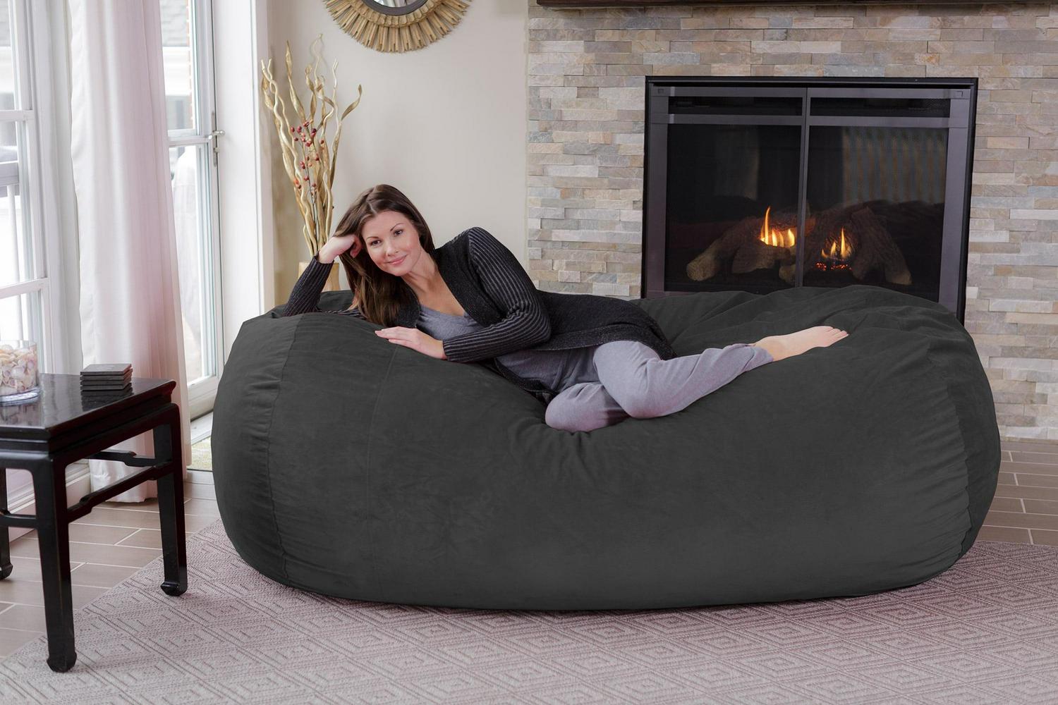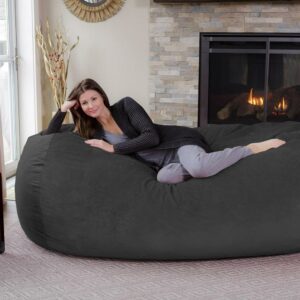 Chill Sack Bean Bag Chair, Memory Foam Lounger with Microsuede Cover, Kids, Adults, 7 ft, Dark Grey Pebble
