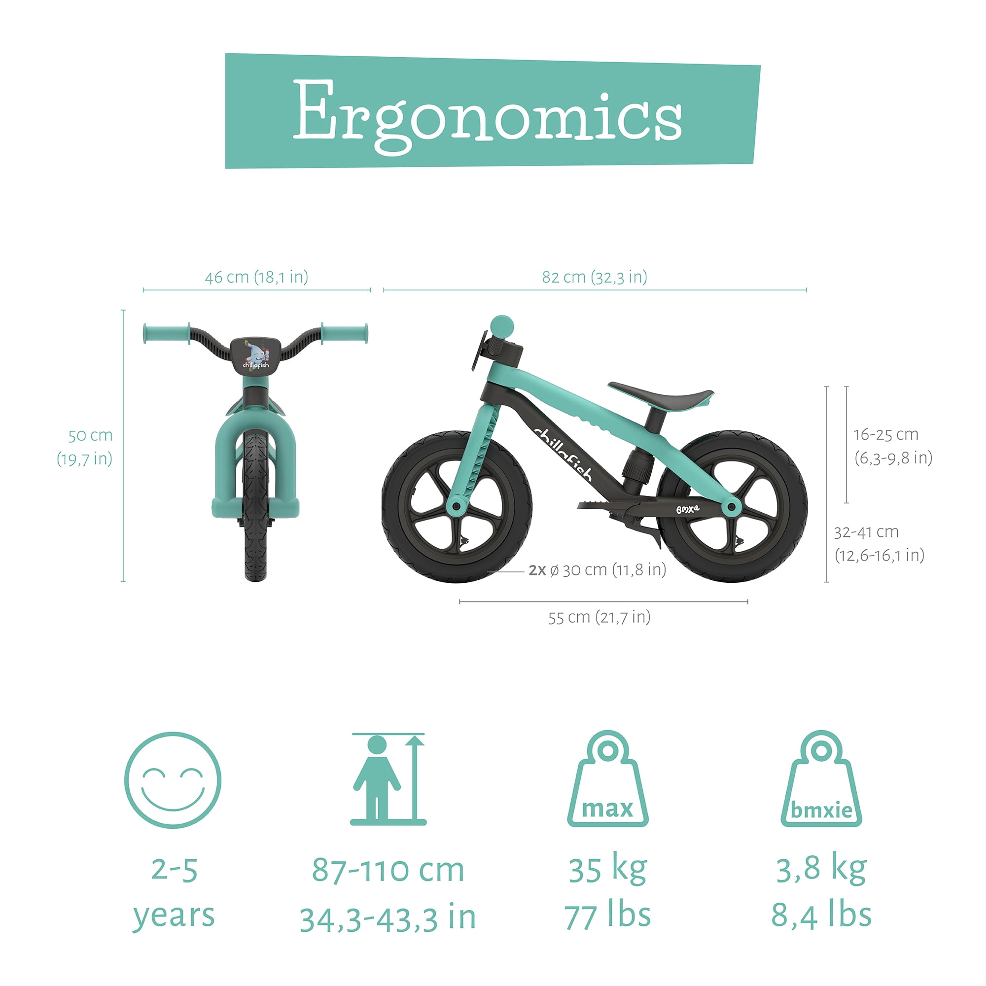 Chillafish Bmxie 2 lightweight balance bike with integrated footrest and footbrake, for kids 2 to 5 years, 12″ inch airless rubberskin tires, adjustable seat without tools, Mint