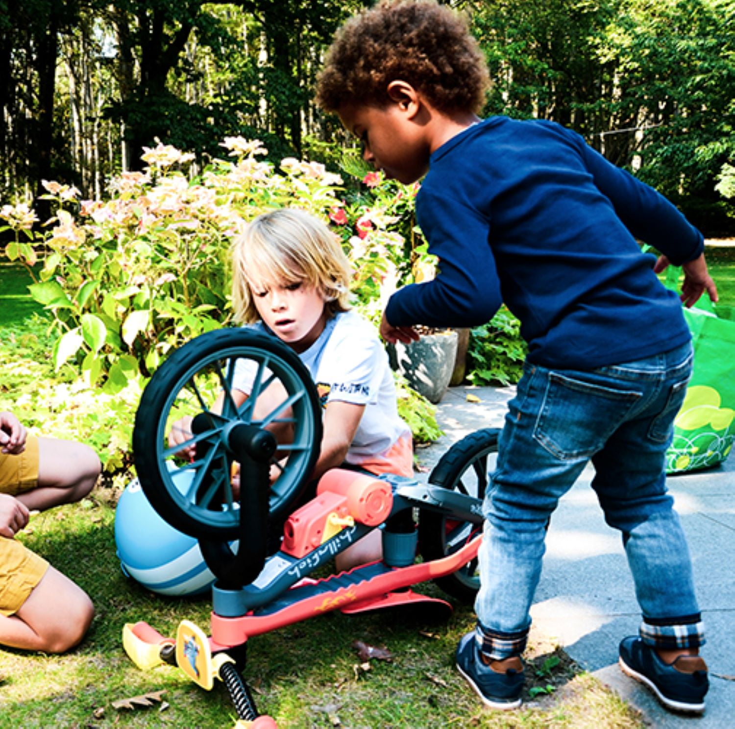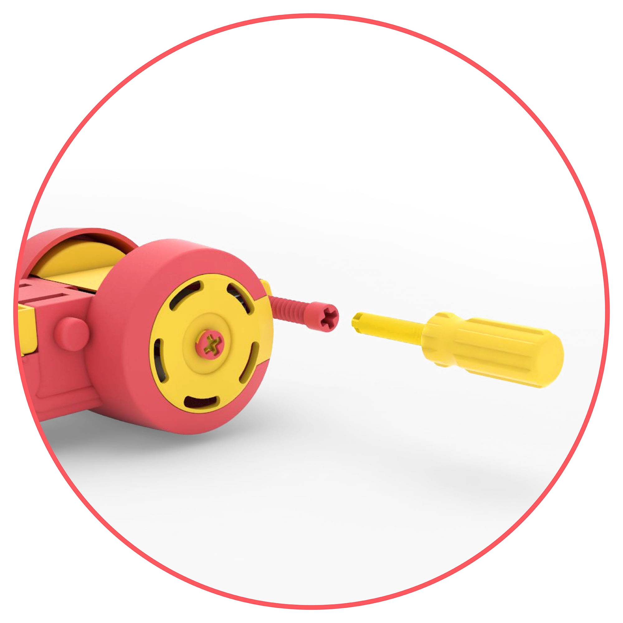 Multi-play lightweight balance trainer for kids age 2-5 The 3 included sound turbo cards make roaring noises at the front fork ~ VROOM VROOM ! Integrated play motor with child safe screwdriver to “fix your engine”. Play motor has 2 small storage areas. Integrated play motor with child safe screwdriver to “fix your engine”. Play motor has 2 small storage areas. Balance bike and play motor instill both gross motor skills and fine motor skills development. Adjustable seat without tools. No puncture RubberSkin tires cannot deflate and have great rubber grip.