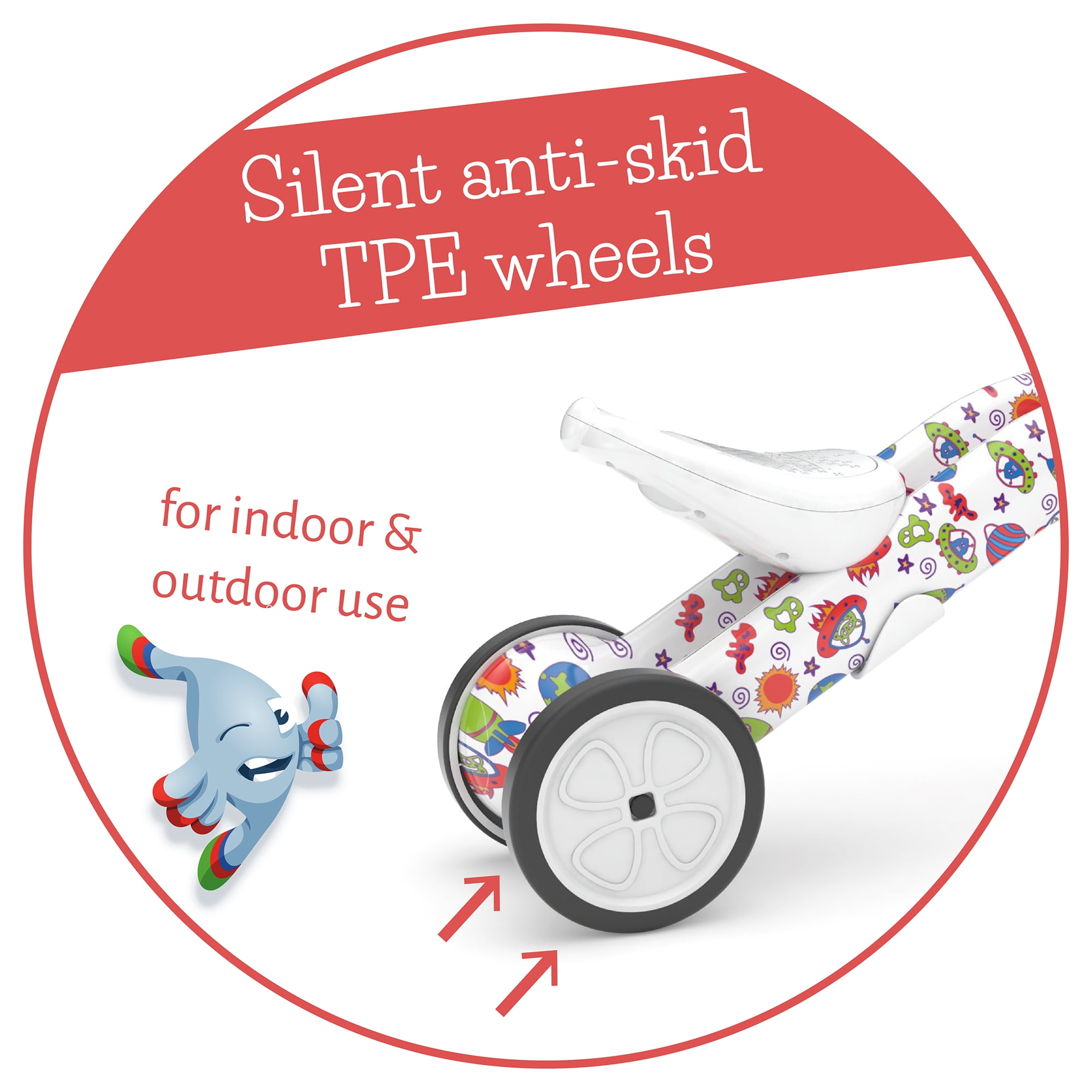 2-in-1 gradual balance bike and tricycle for kids from 1-3 years. Easily switch between 3-wheel tricycle mode and 2-wheel balance mode without tools, whenever you child is ready – the best way to teach your child balance at his/her own pace. The seat grows with your child (8,7 inch / 22 cm in 3-wheel mode to 10,2 inch / 26 cm in 2-wheel mode) to better support the new skills of your child. Silent and non-marking and anti-skid TPE synthetic rubber tires for both indoor and outdoor pleasure. Lightweight and easy to carry: thanks to a carry handle built into the back of the seat you can bring the Bunzi on all your child’s trips and adventures. Hidden storage box in the seat to bring along a toy or a snack for the ride. Made from high-quality ABS material to play longer. Comes fully assembled in the packaging, ready to ride.