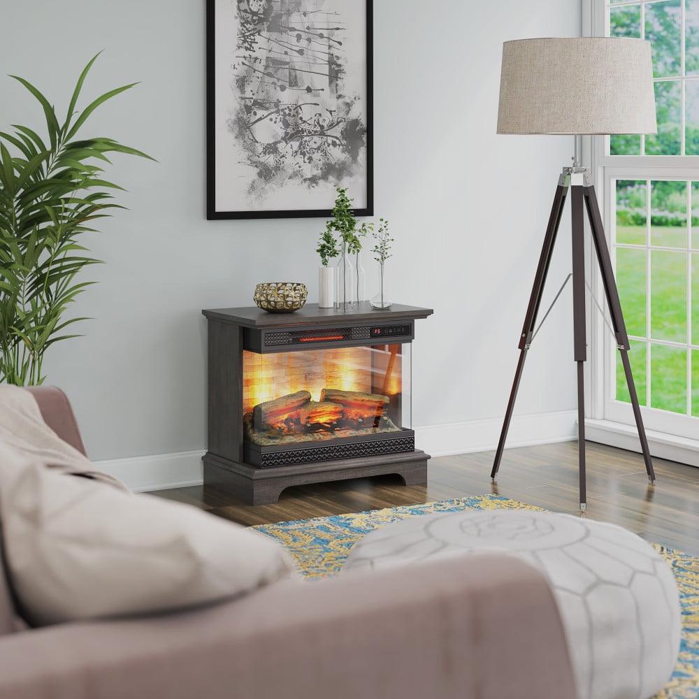 Set the perfect mood for entertaining with the panoramic views of the Pano Glow Electric Fireplace in a Weathered Gray finish. With a three-sided glass display, you and your guests can enjoy the ambiance of flickering flames from any seat in the room. You ll love how the stacked stone design offers an instant style upgrade to any space. Customize your ideal fire with or without heat, thanks to an infrared quartz 5,200 BTU heater that provides supplemental zone heating for rooms up to 1,000 square feet and independent flame effects. This cozy fireplace helps you save money on your heating bills when you turn down your thermostat and use heat only when and where you need it.