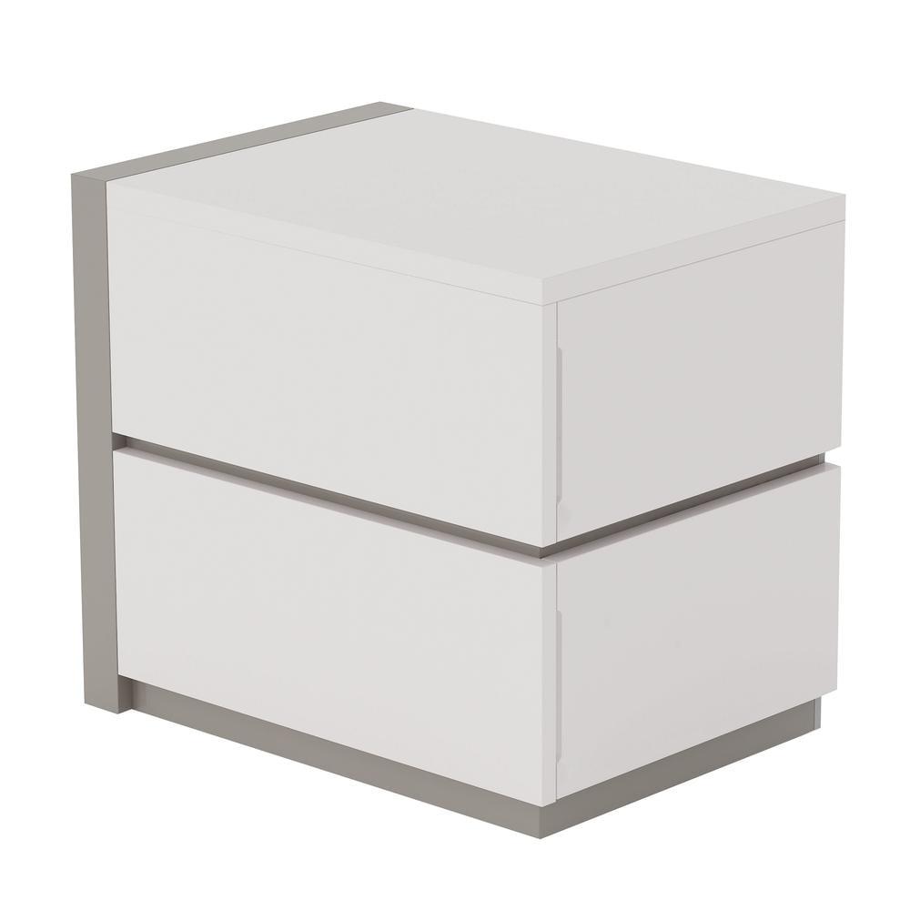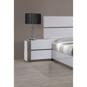 Left 2 Drawer Nightstand, Gloss White & Grey