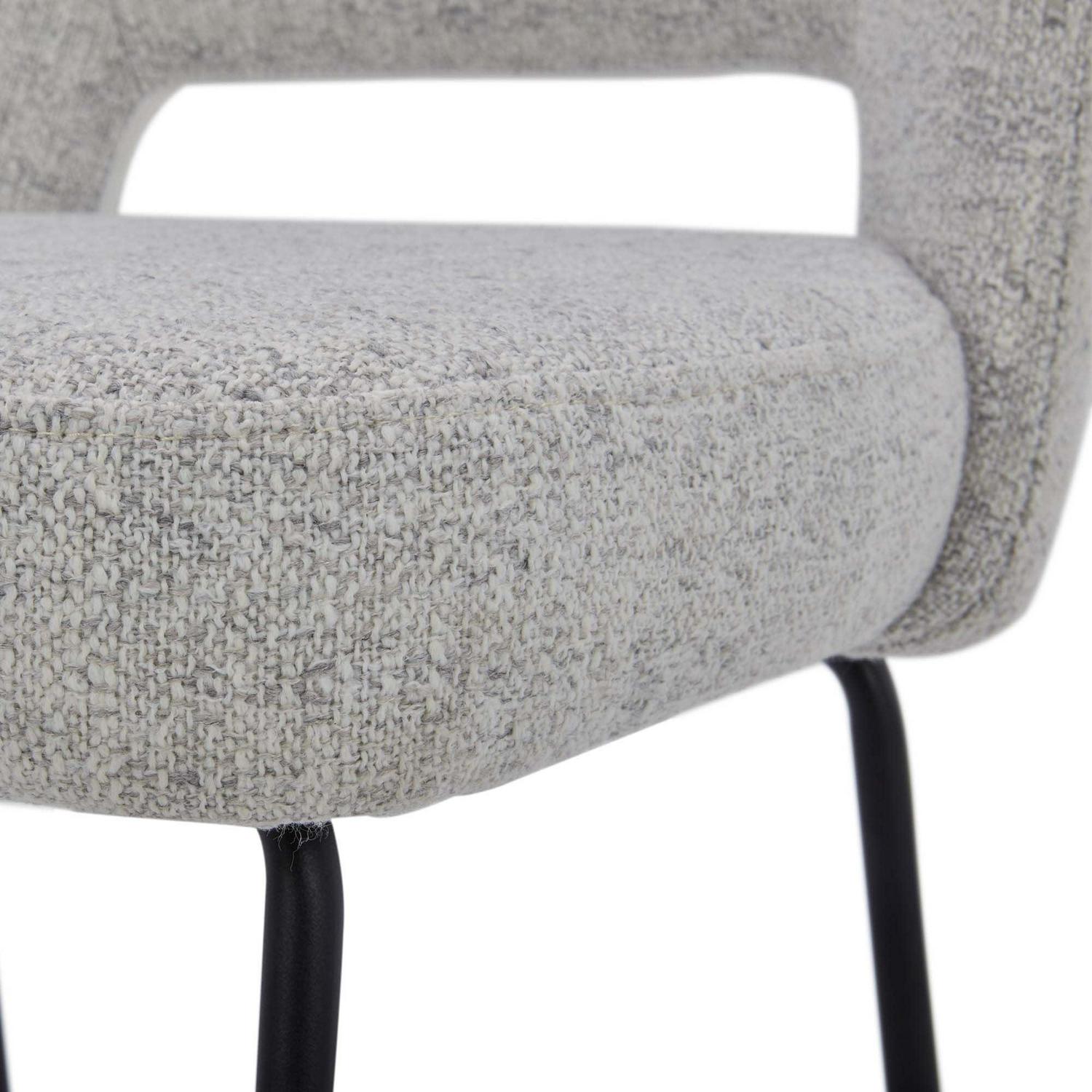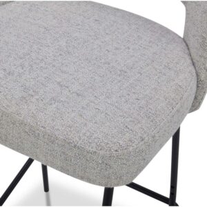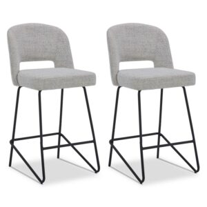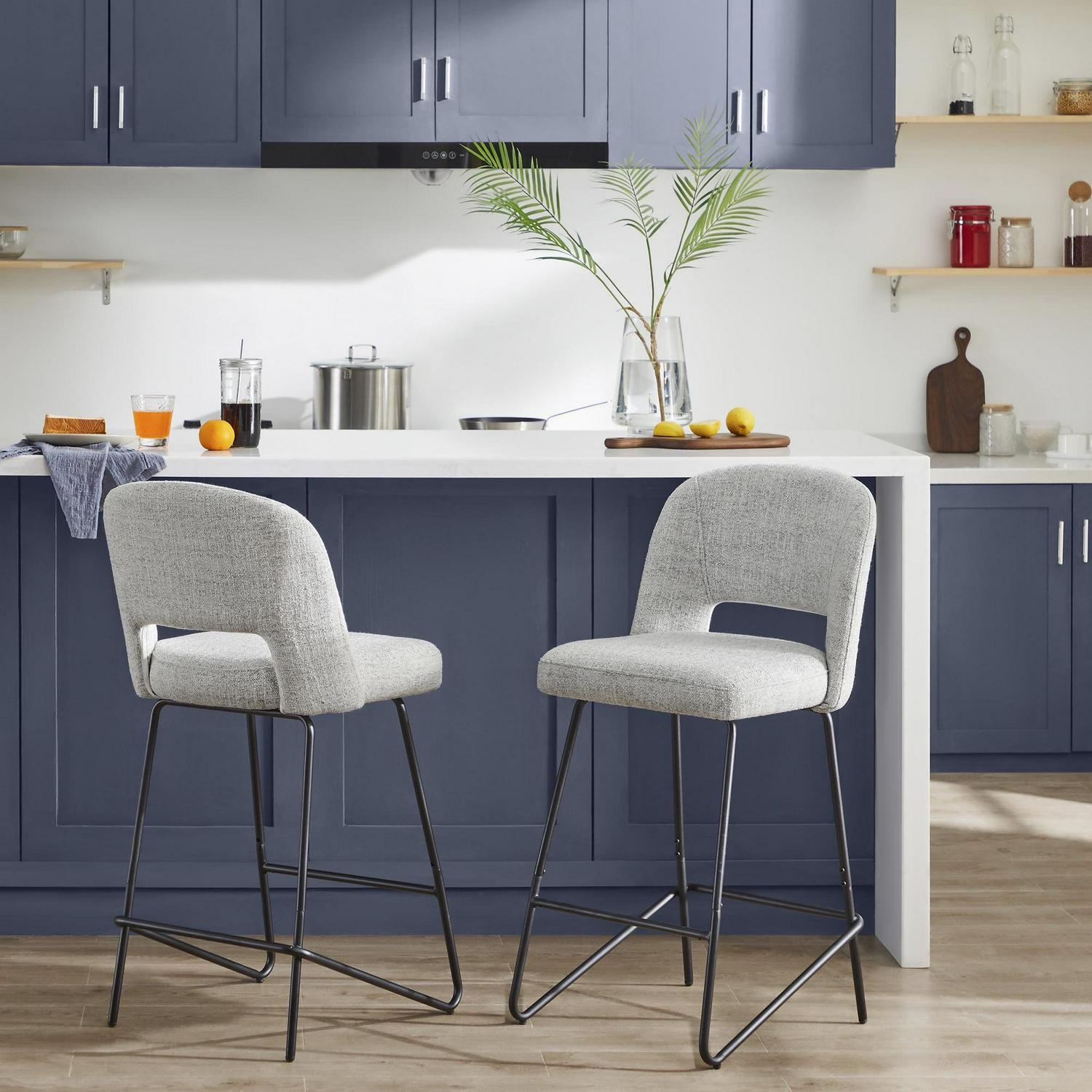 The rounded, open-backed design, upholstered in gorgeous fabric, lends an air of contemporary chic and modern sensibility to any setting, while the curved backrest and padded seat envelopes you in comfort. The chair frame is crafted from sturdy iron base in uncomplicated yet modern matte black finish to ensure durability and sturdiness. CHITA bar stool set of 2 in modern and simple style will perfectly match your decor and refresh your home environment.