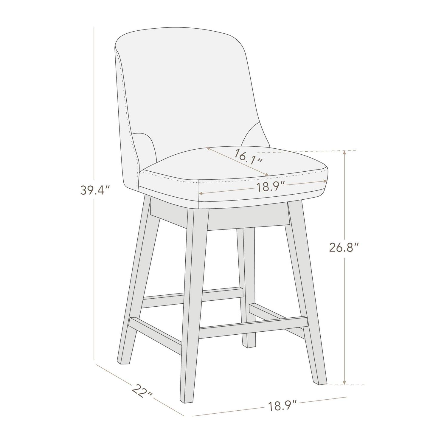 CHITA Modern UpholsteredCounter Height Swivel Barstool of 2 Pieces for Bar Area & Kitchen Island: